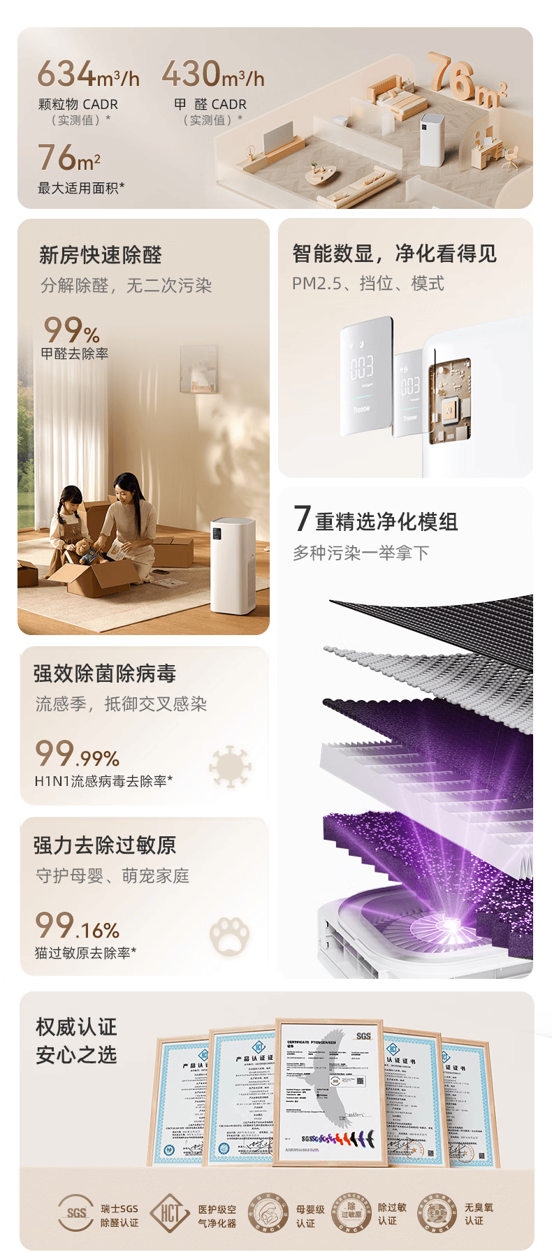 树新风空气净化器 除甲醛异味除花粉过敏认证 家用宠物大空间全效净化器K2