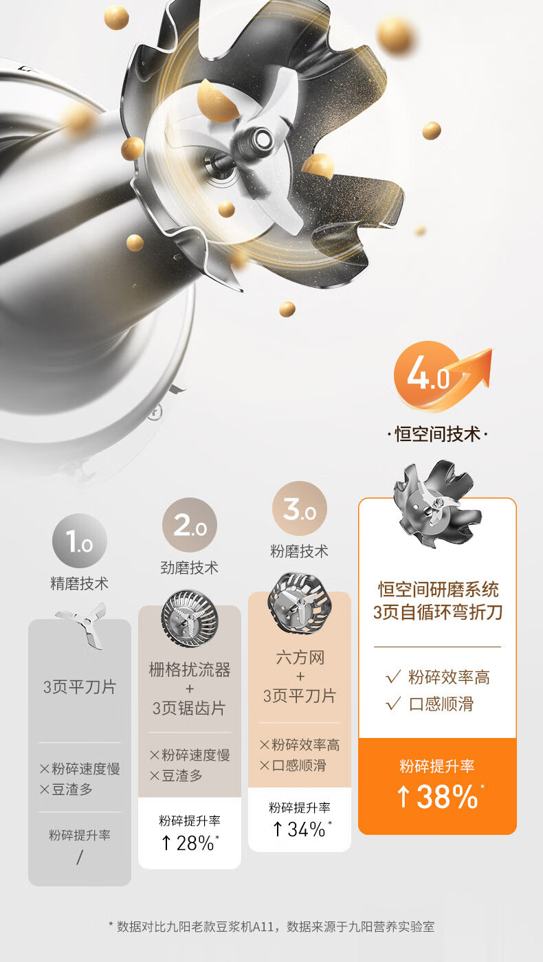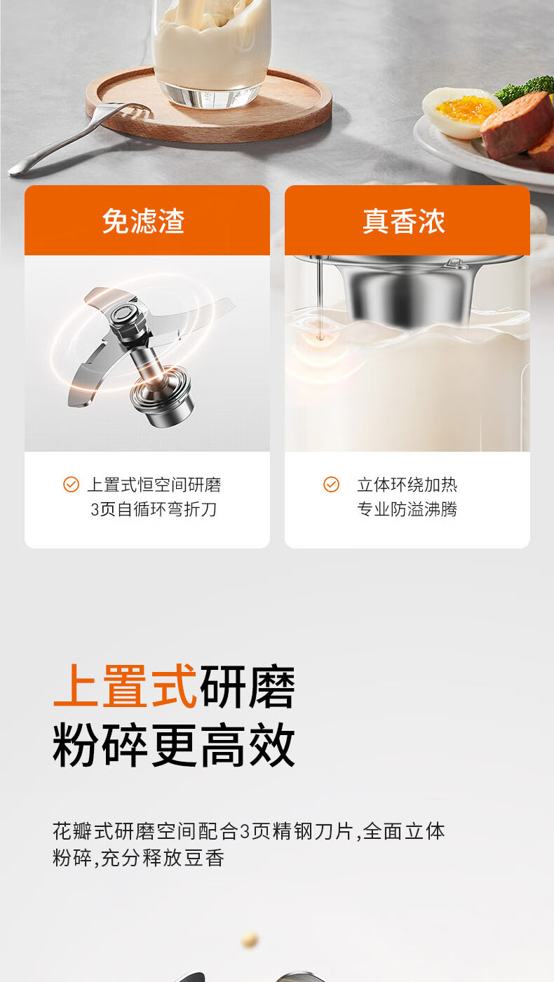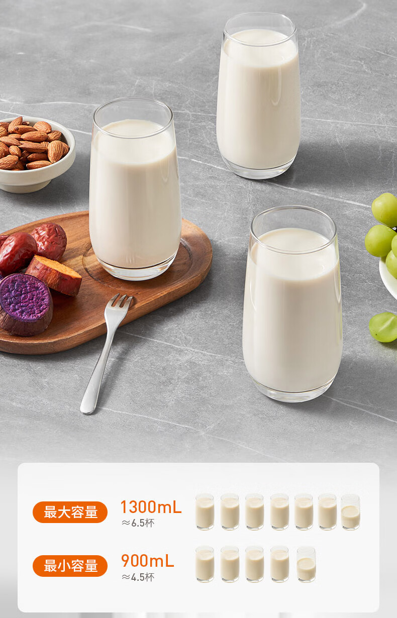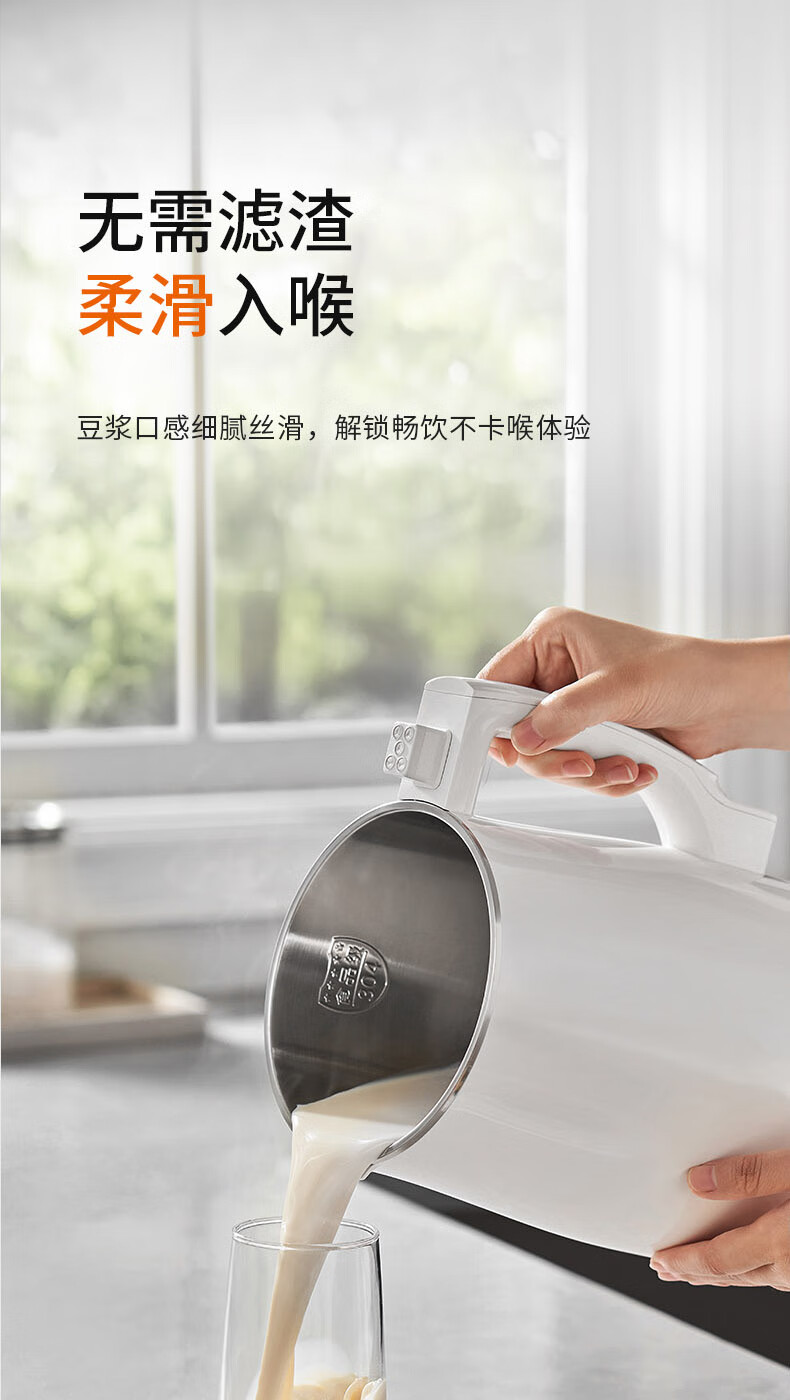 九阳(Joyoung)豆浆机1.3L破壁免滤轻音降噪304不锈钢3-