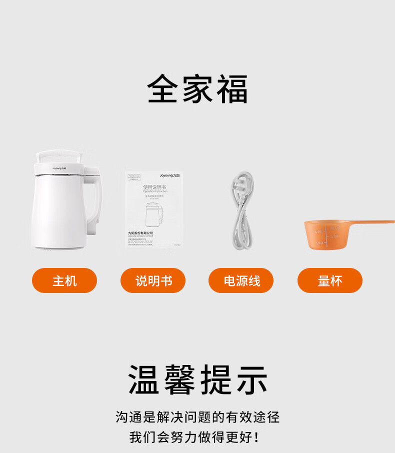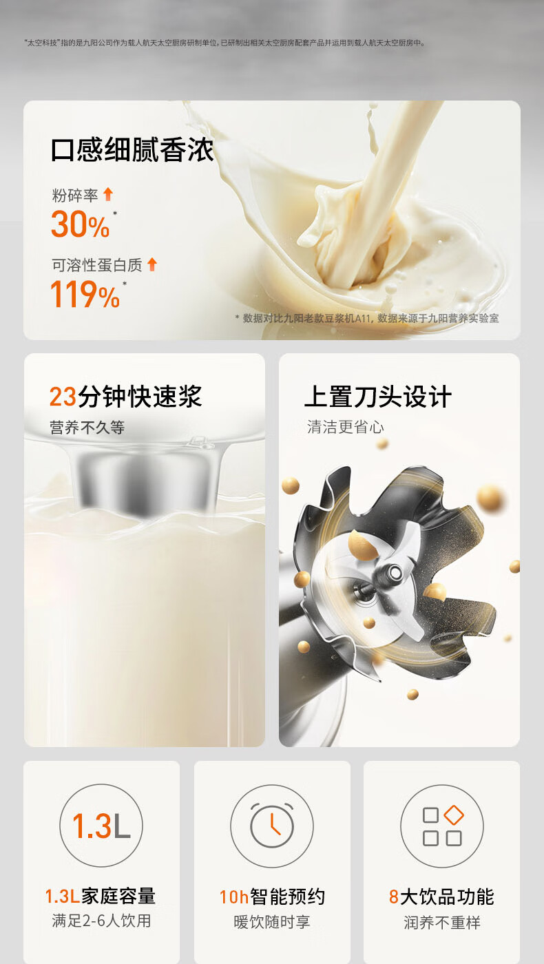 九阳(Joyoung)豆浆机1L容量 快速浆轻音破壁预约时间一