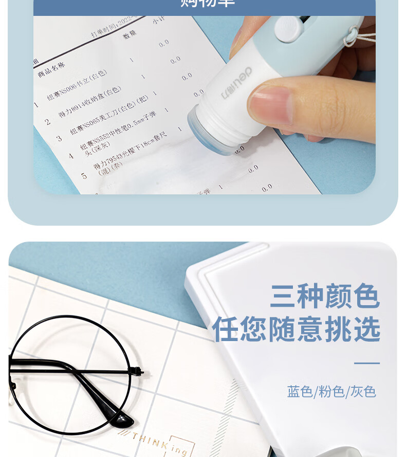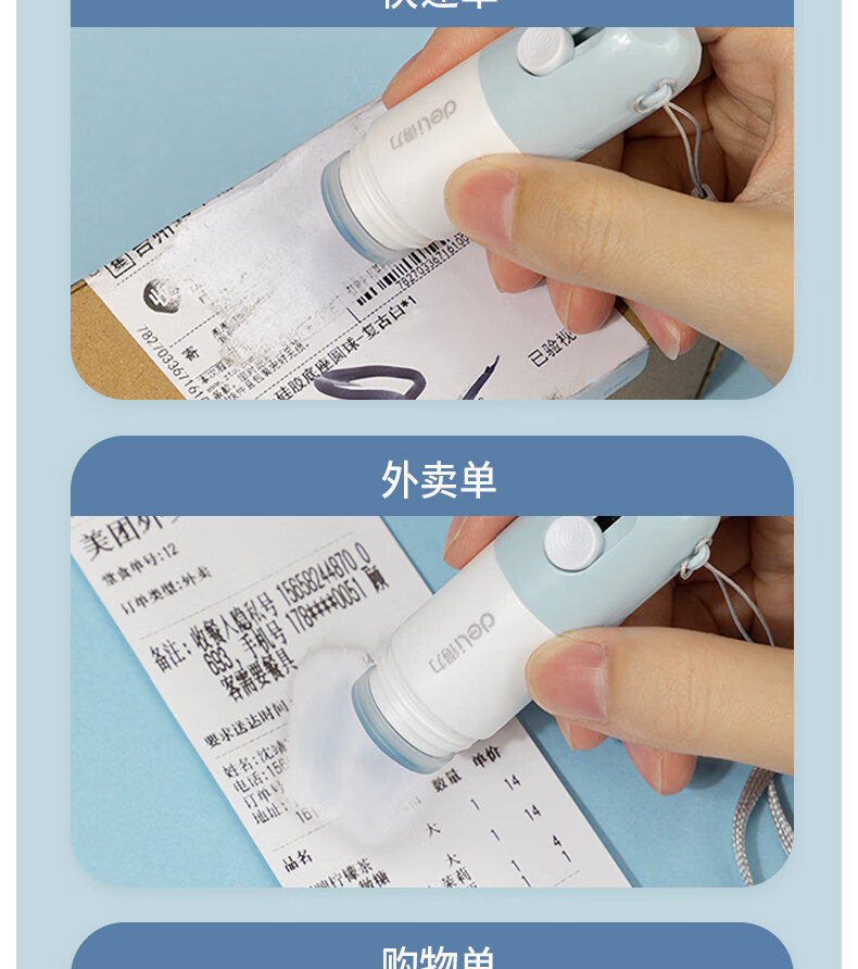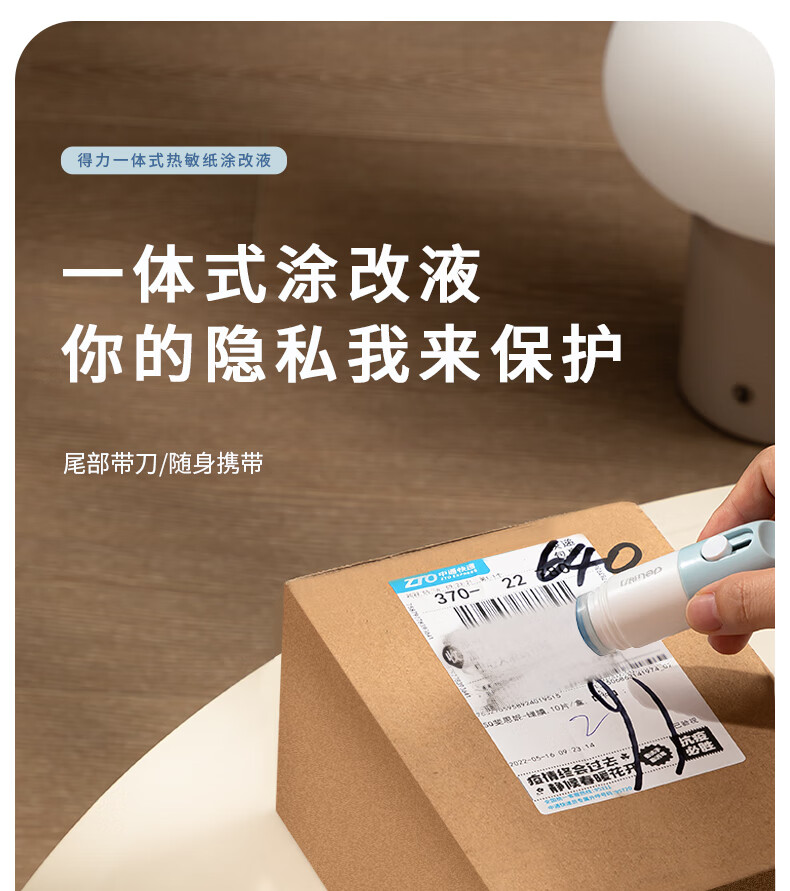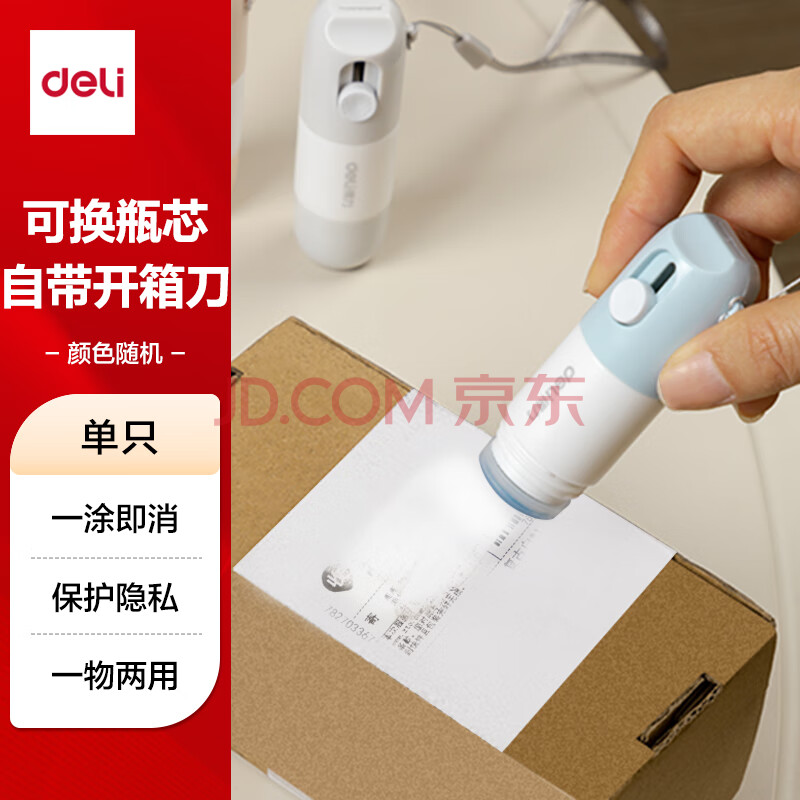 得力(deli)一体式印章涂抹修正液 热敏纸涂改液 快递隐私保护 信息防泄漏 不脏手自带开箱刀 颜色随机 JQ122