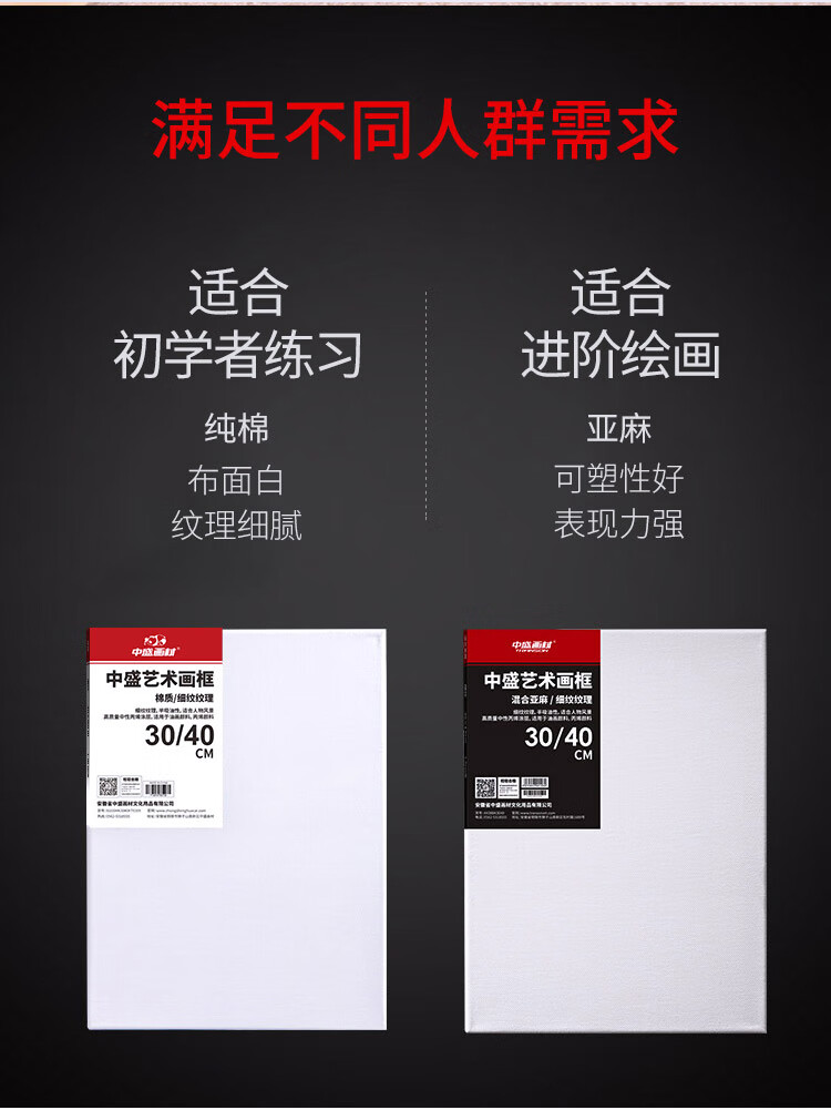 中盛画材棉质油画布框40*50颜料板油画框初学者工具丙烯颜料内框带框子套装diy长方形速写马克笔绘画