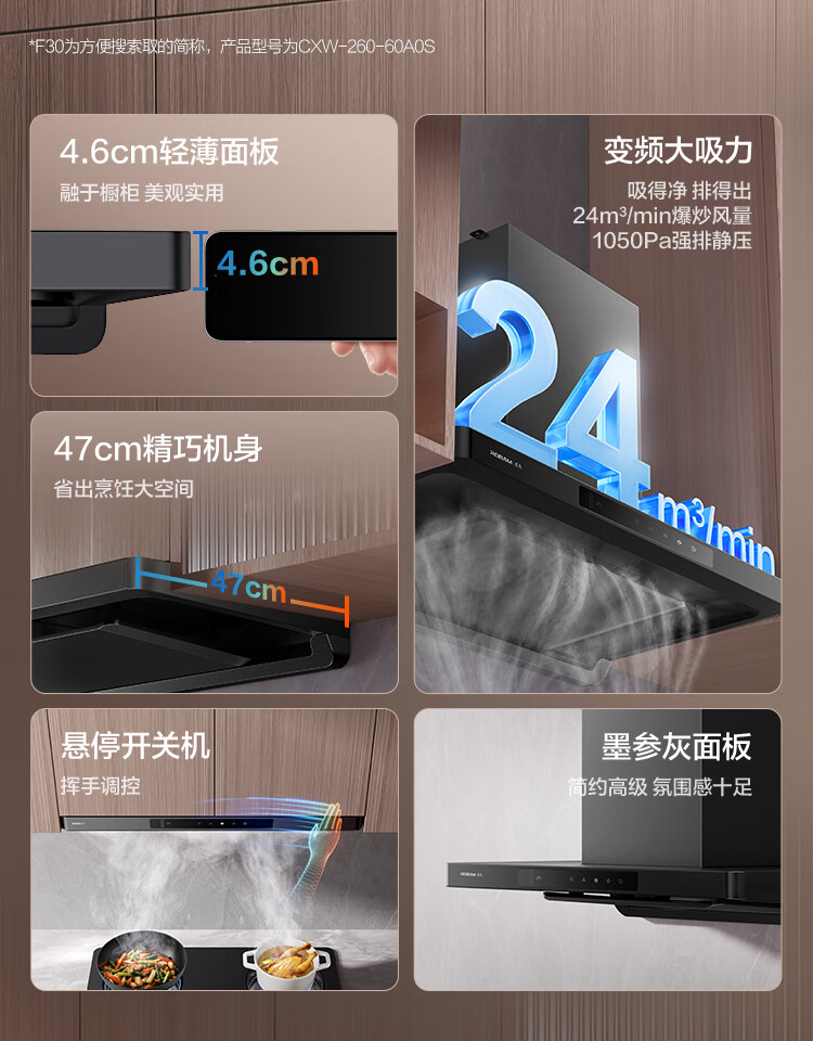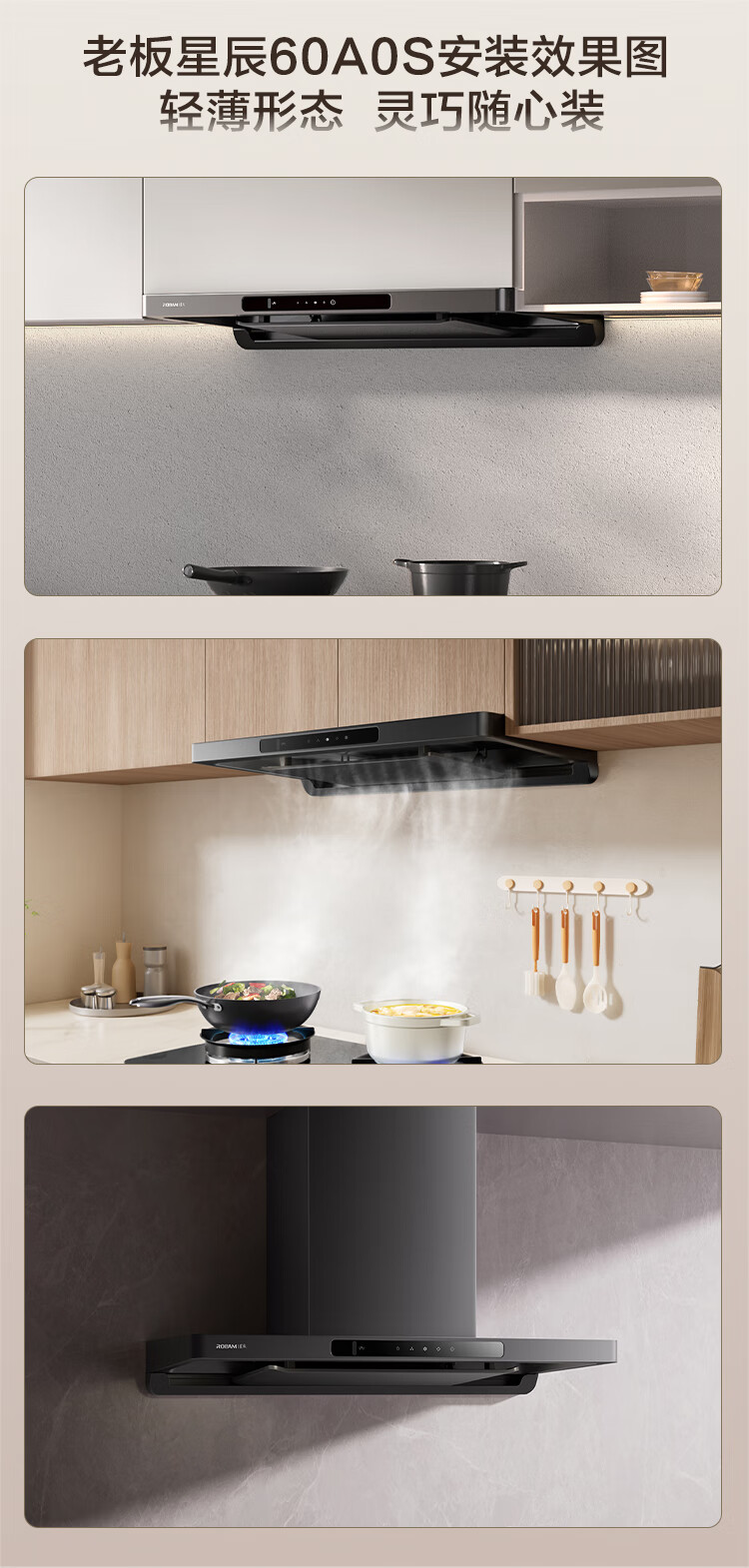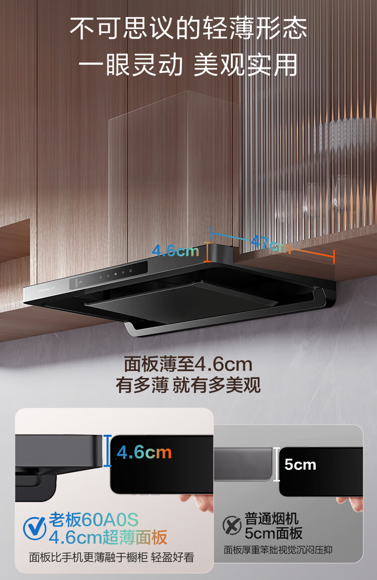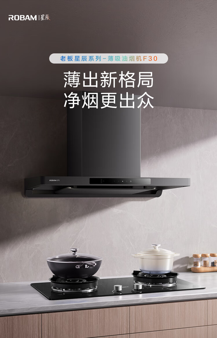 老板F30超薄欧式顶吸抽吸排油烟机24风量家用大吸力一级能效可配燃气灶星辰60A0S