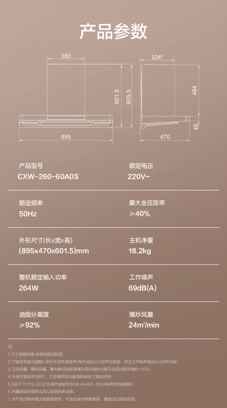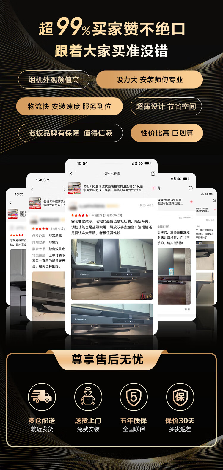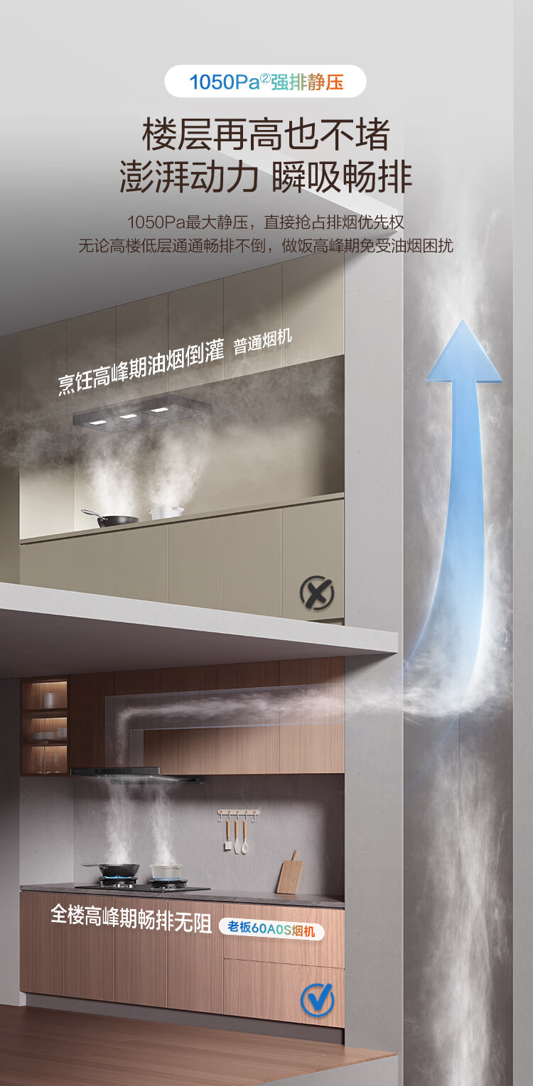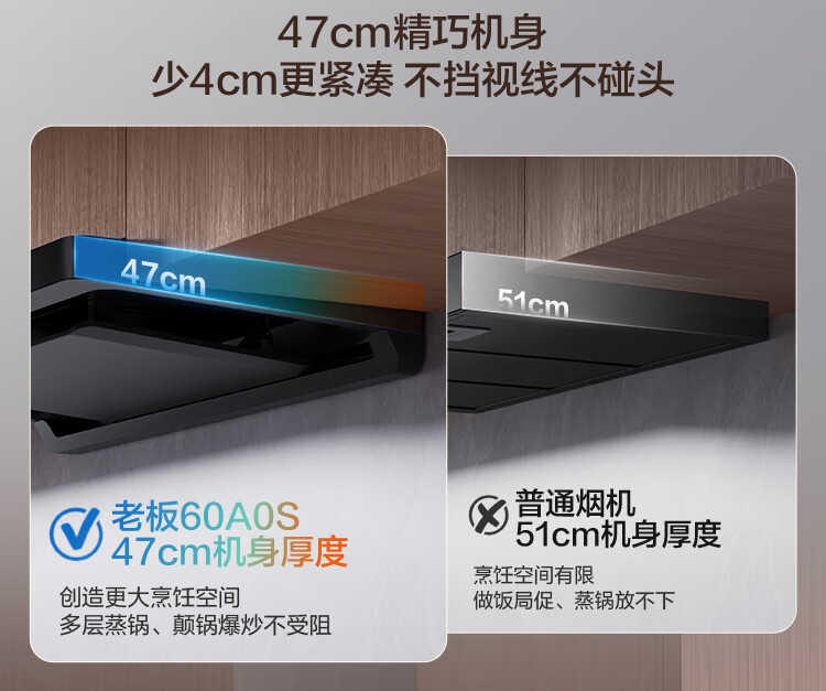 老板F30超薄欧式顶吸抽吸排油烟机24风量家用大吸力一级能效可配燃气灶星辰60A0S