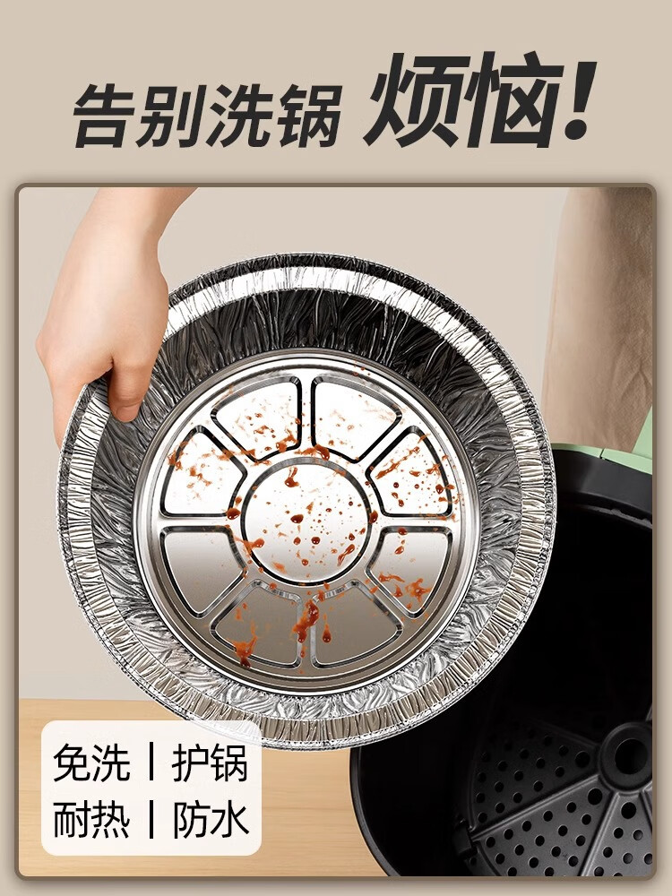 喜润家锡纸空气炸锅家用专用纸锡纸盘烤箱烘焙烧烤圆形锡纸盒铝箔烤盘
