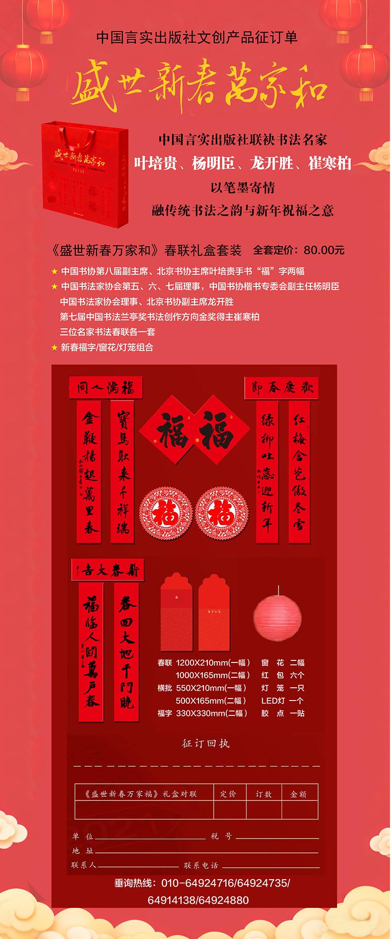 春联三幅、窗花二幅、福字二幅、红包六个、灯笼一只、LED灯一个、胶点一贴。