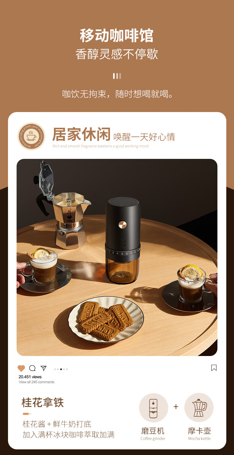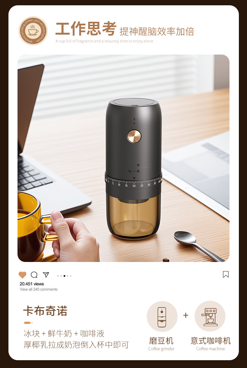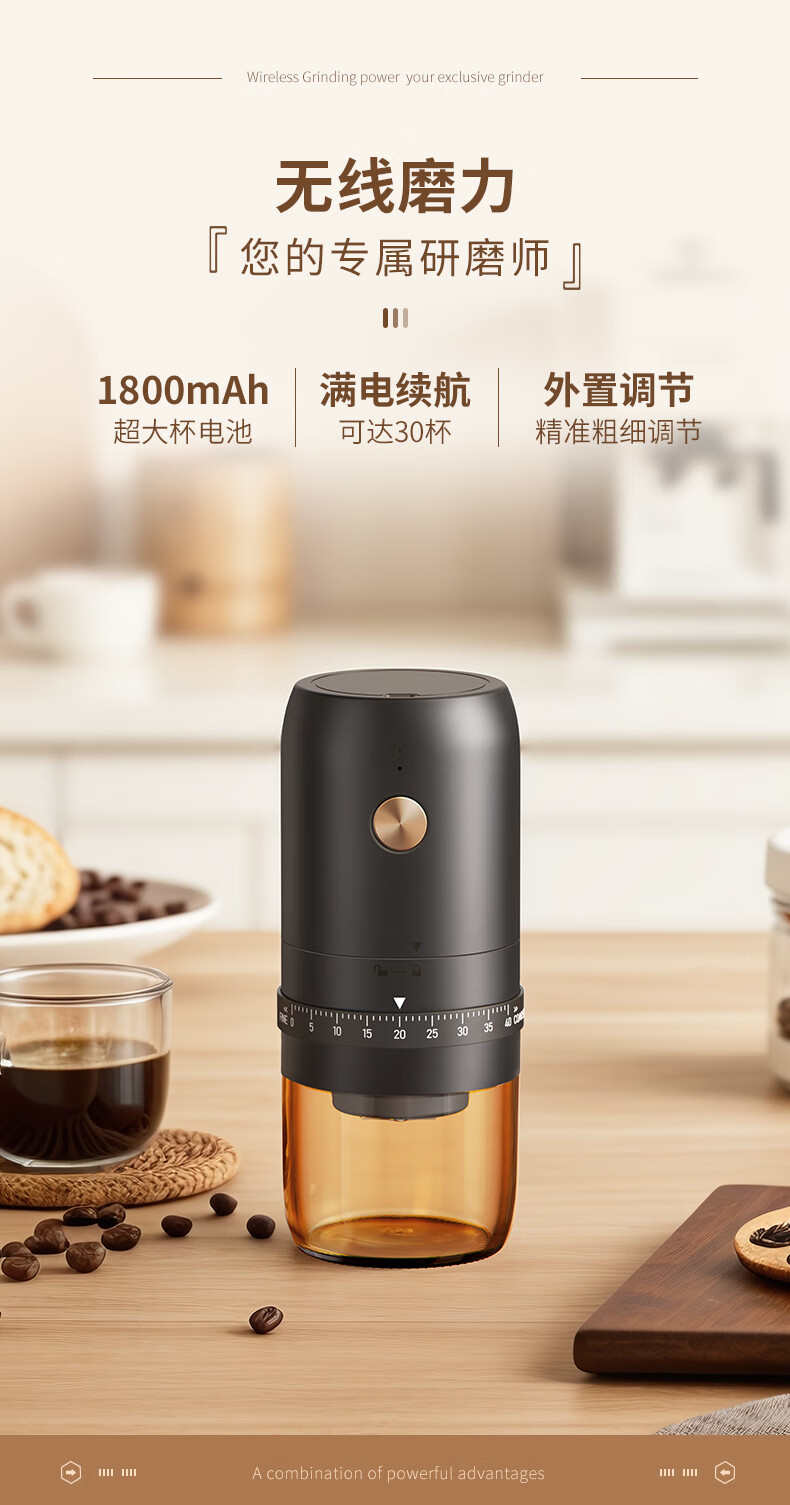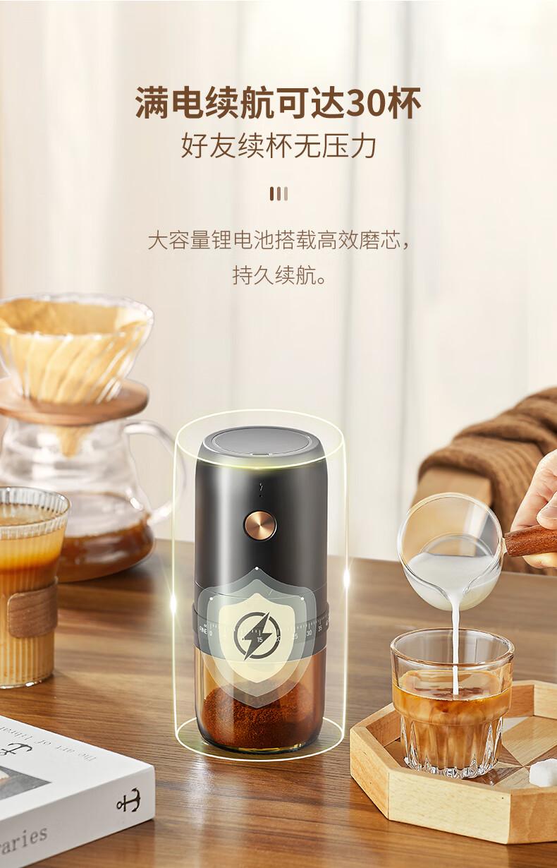 CLITON电动咖啡磨豆机手摇咖啡豆研磨机手磨电动2合1手冲自动磨粉机