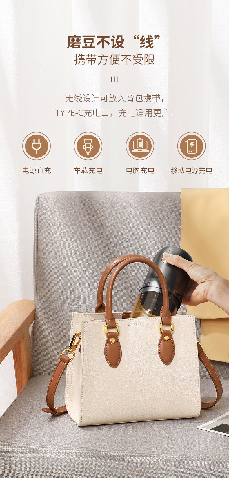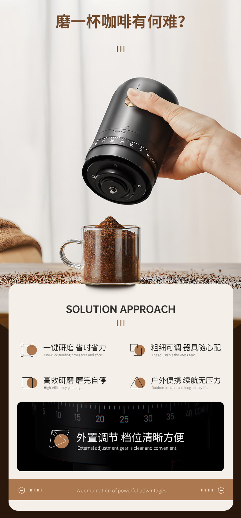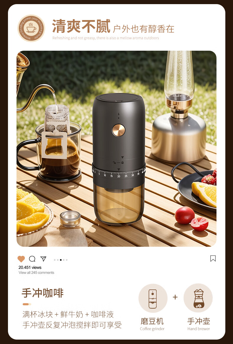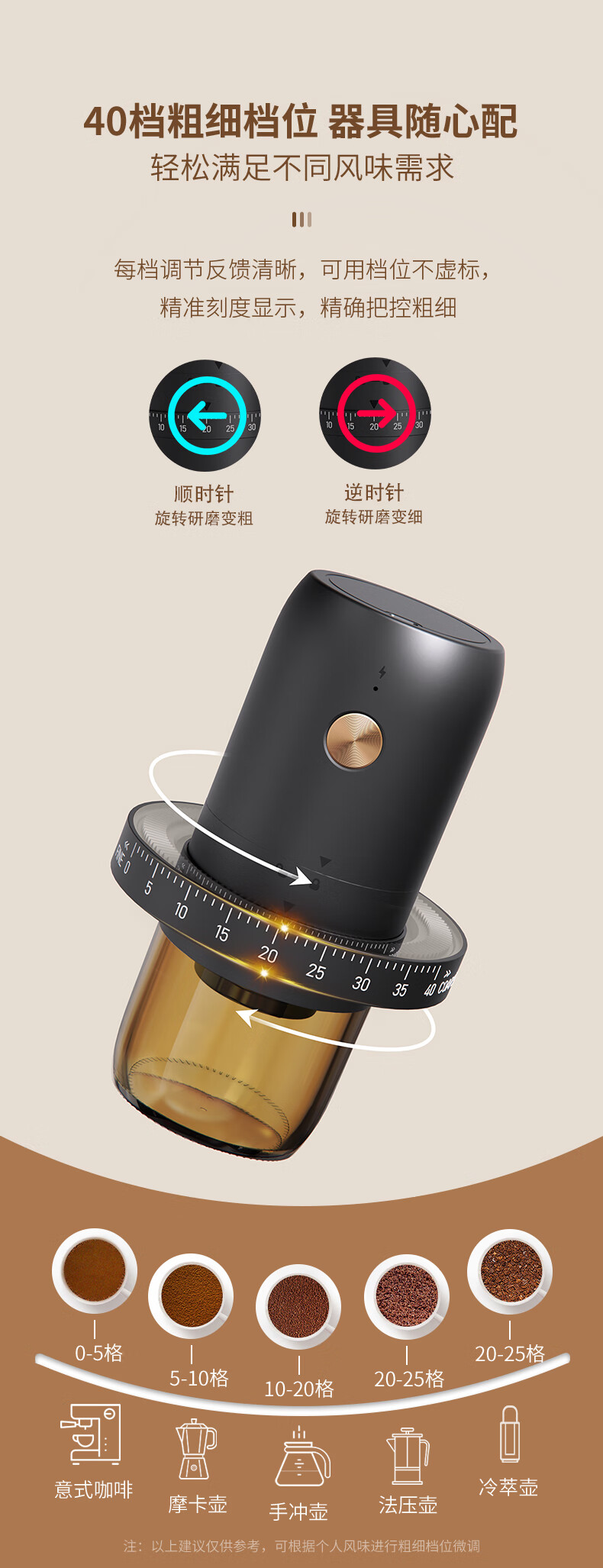 CLITON电动咖啡磨豆机手摇咖啡豆研磨机手磨电动2合1手冲自动磨粉机