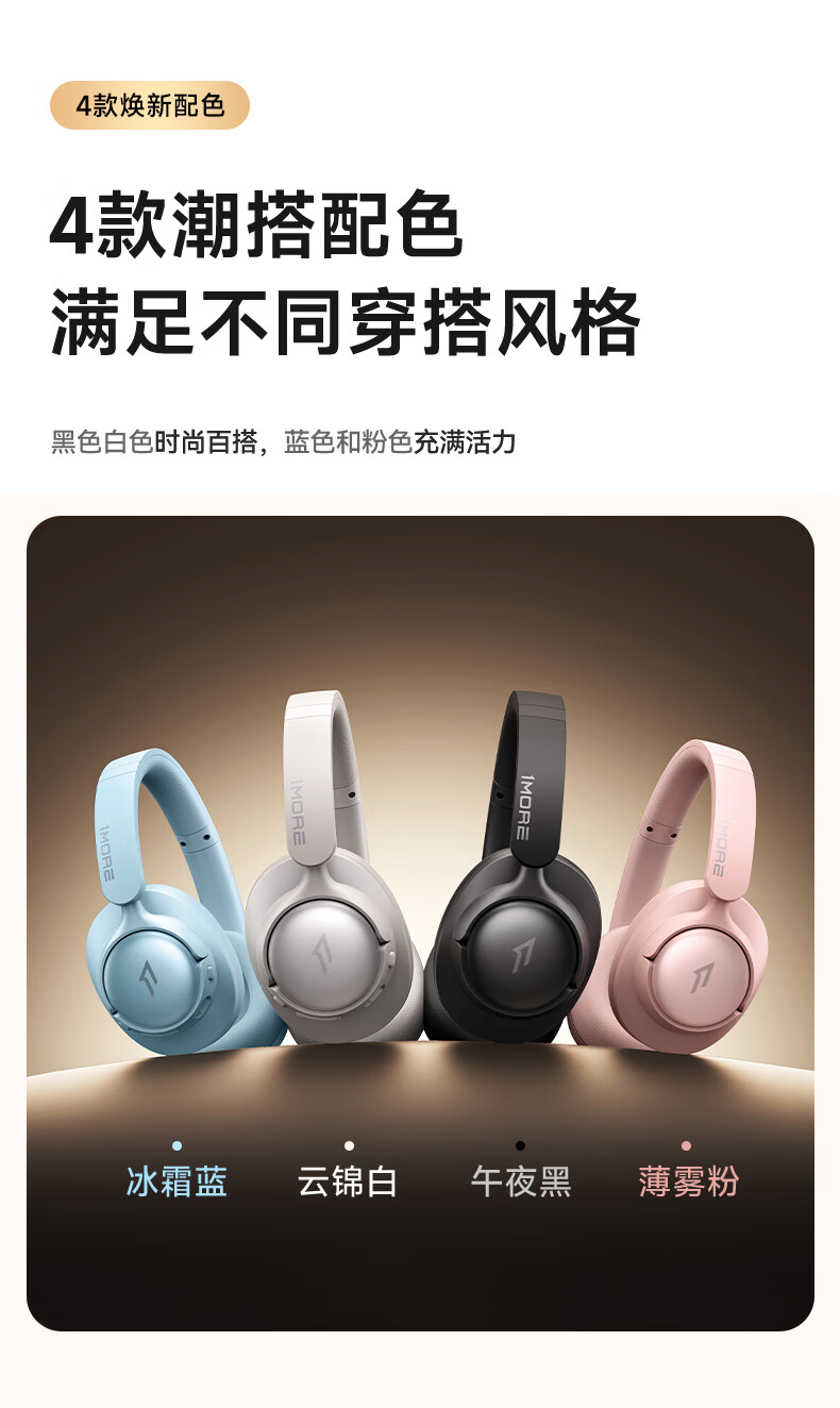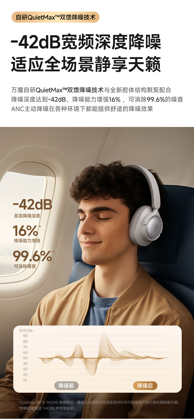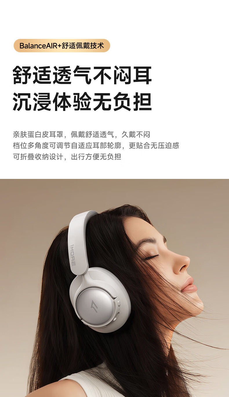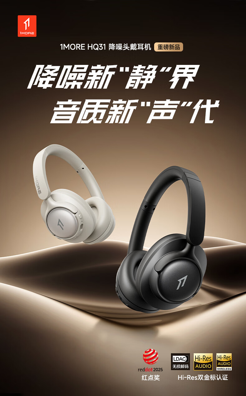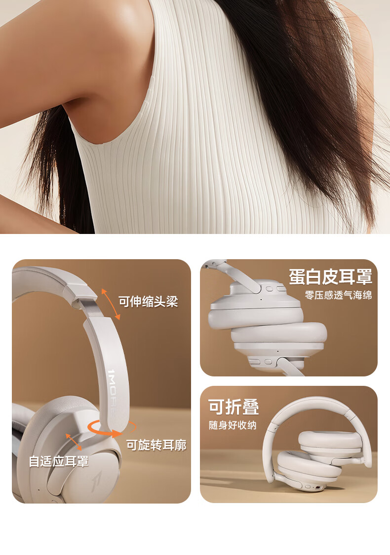 万魔(1MORE)HQ31头戴式耳机主动降噪耳机头戴式电竞游戏无线耳麦2025款蓝牙耳机 云锦白