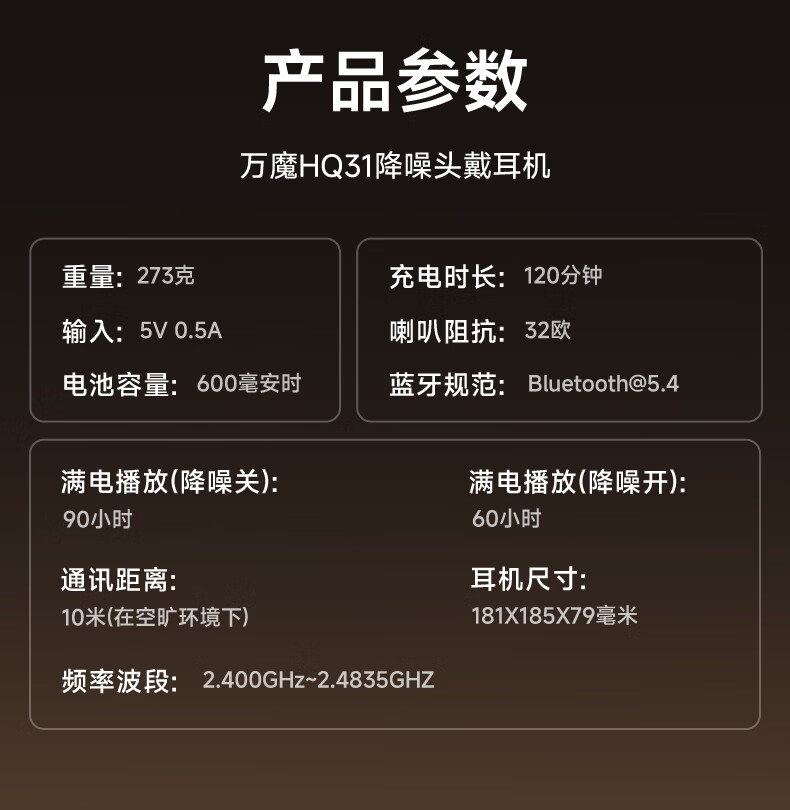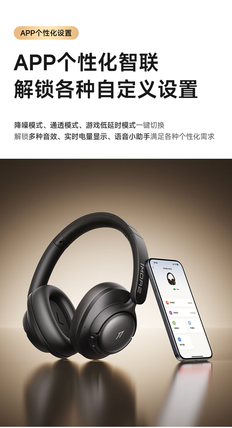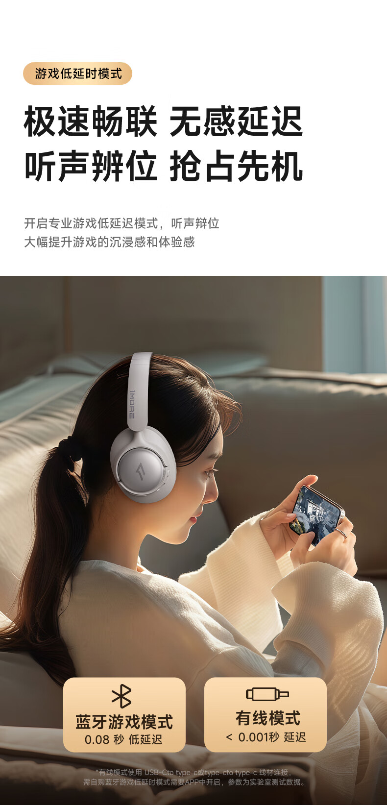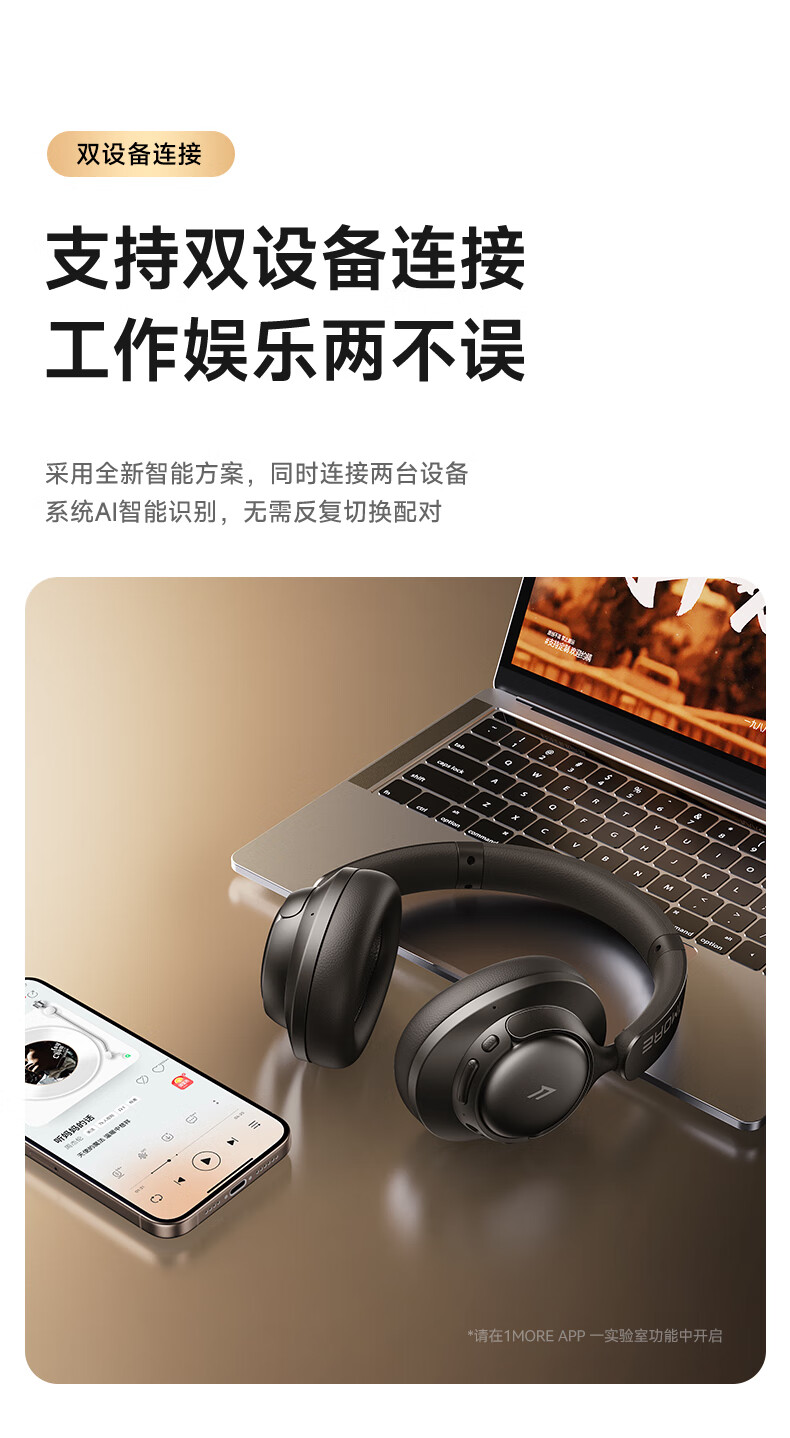 万魔(1MORE)HQ31头戴式耳机主动降噪耳机头戴式电竞游戏无线耳麦2025款蓝牙耳机 云锦白