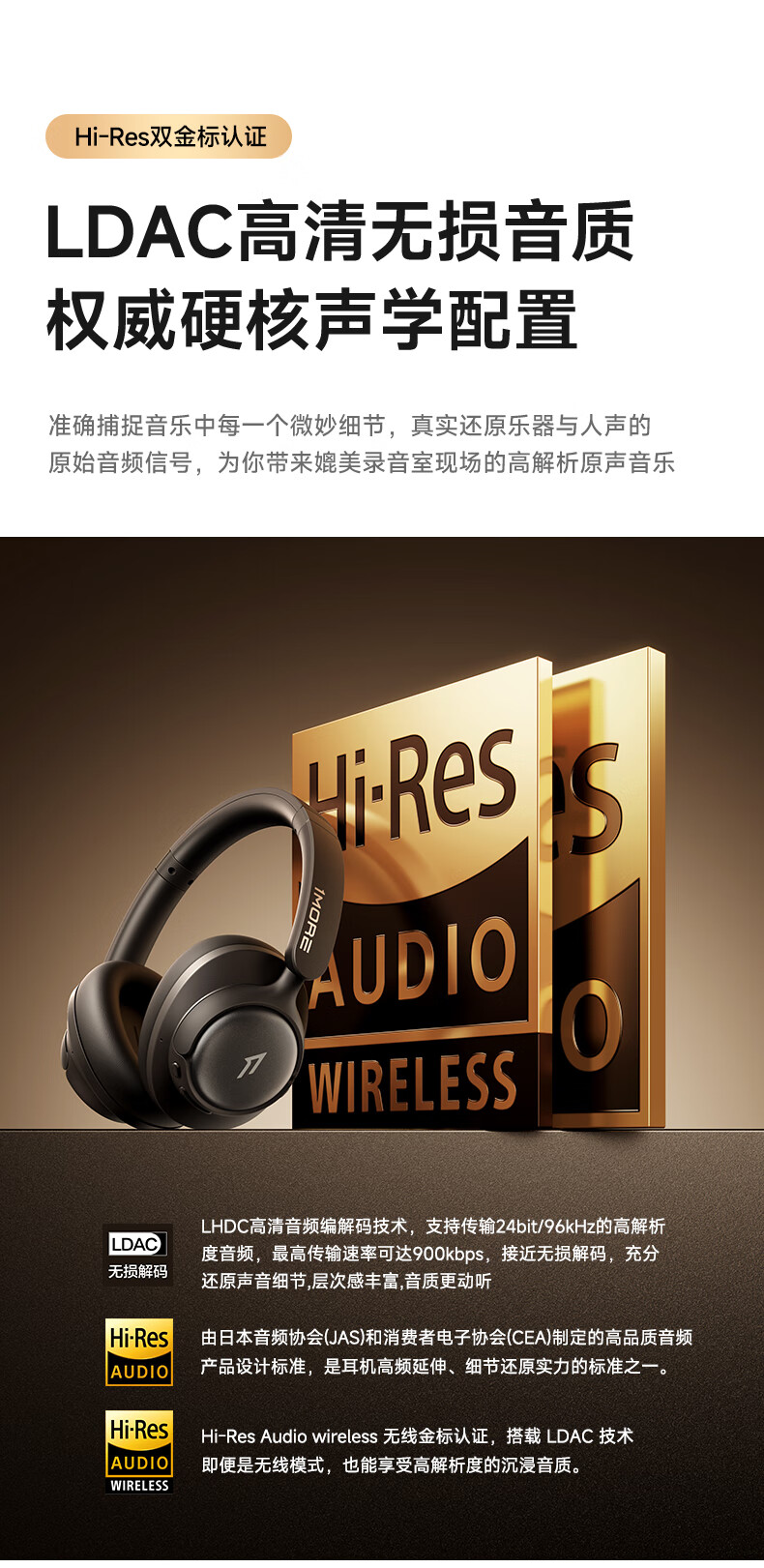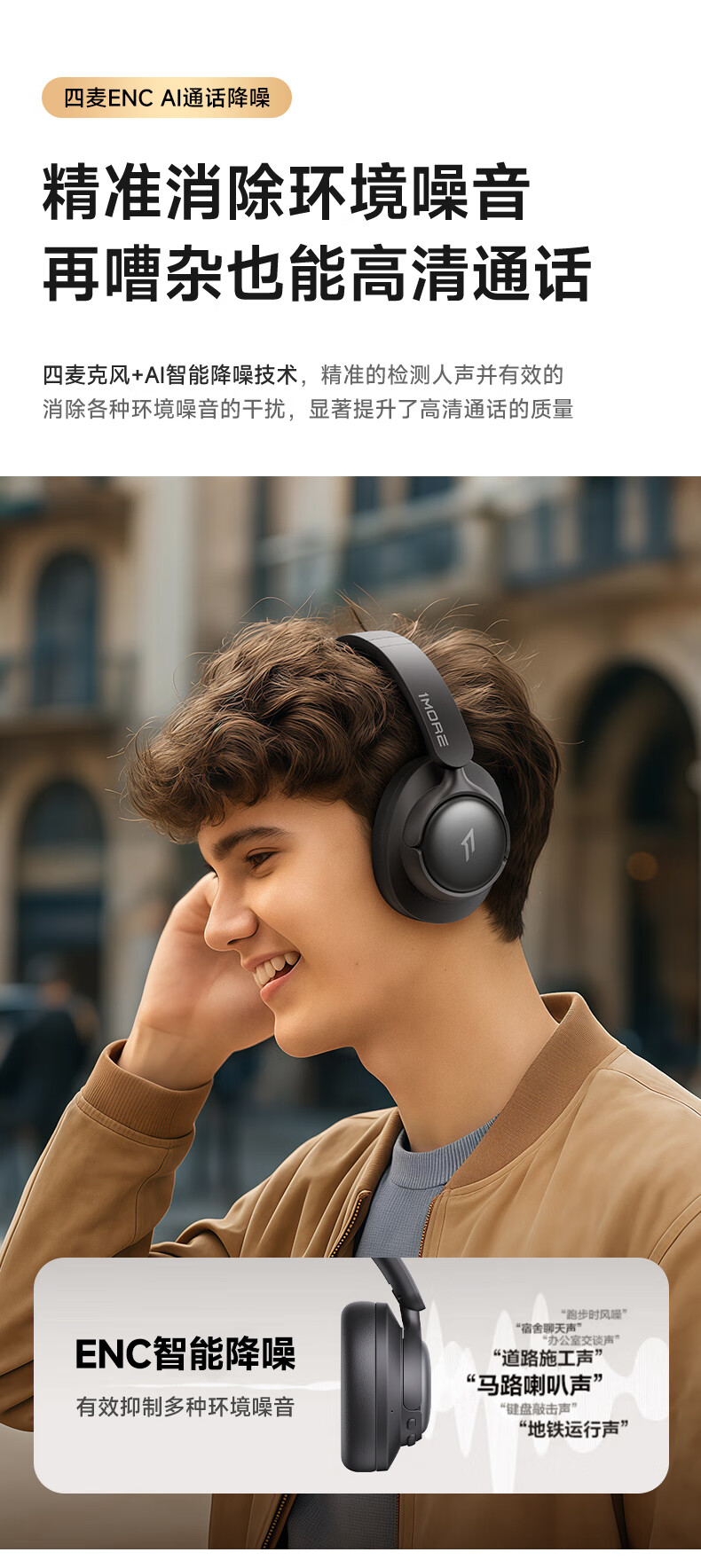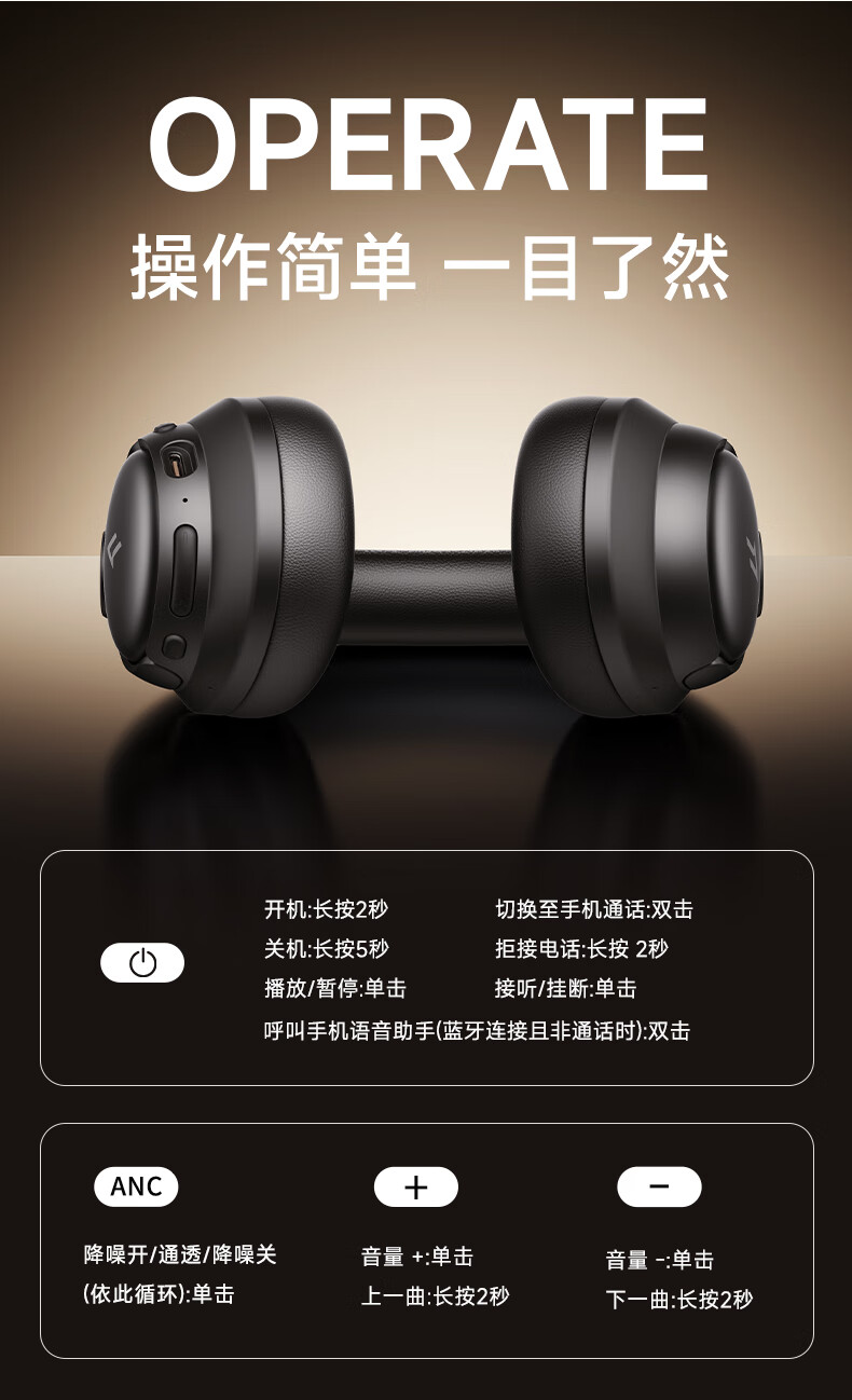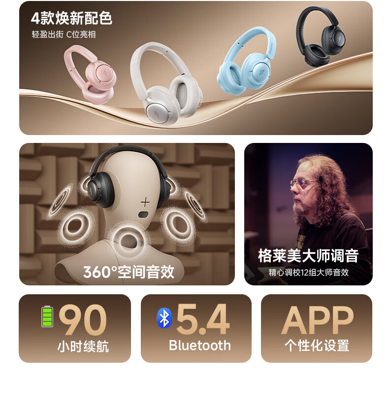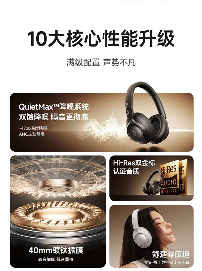 万魔(1MORE)HQ31头戴式耳机主动降噪耳机头戴式电竞游戏无线耳麦2025款蓝牙耳机 云锦白