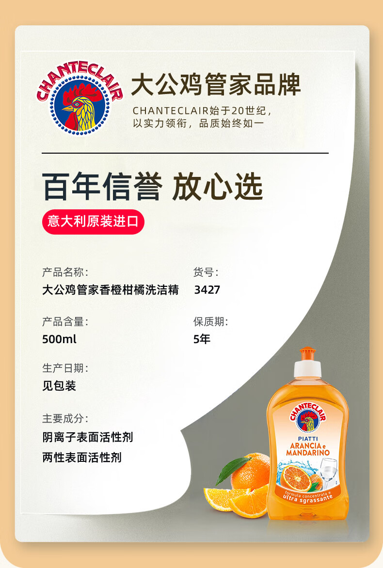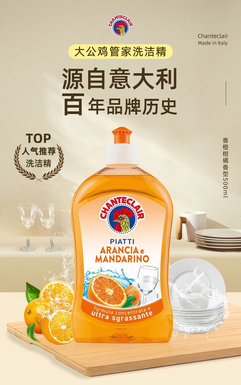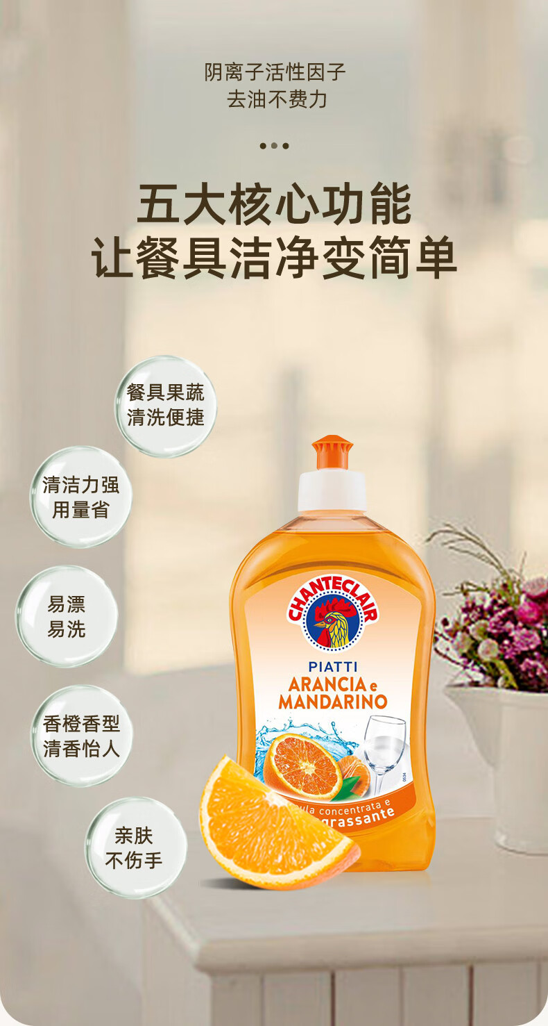 CHANTECLAIR大公鸡管家 香橙柑橘洗洁精 家庭清洁 (意大利进口) 500ml
