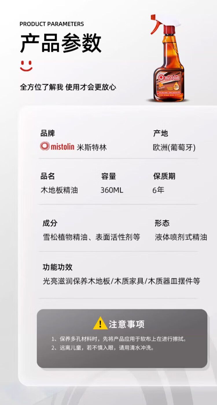 MISTOLIN进口地板蜡木地板保养油实木复合地板护理精油红木保养蜡360ml