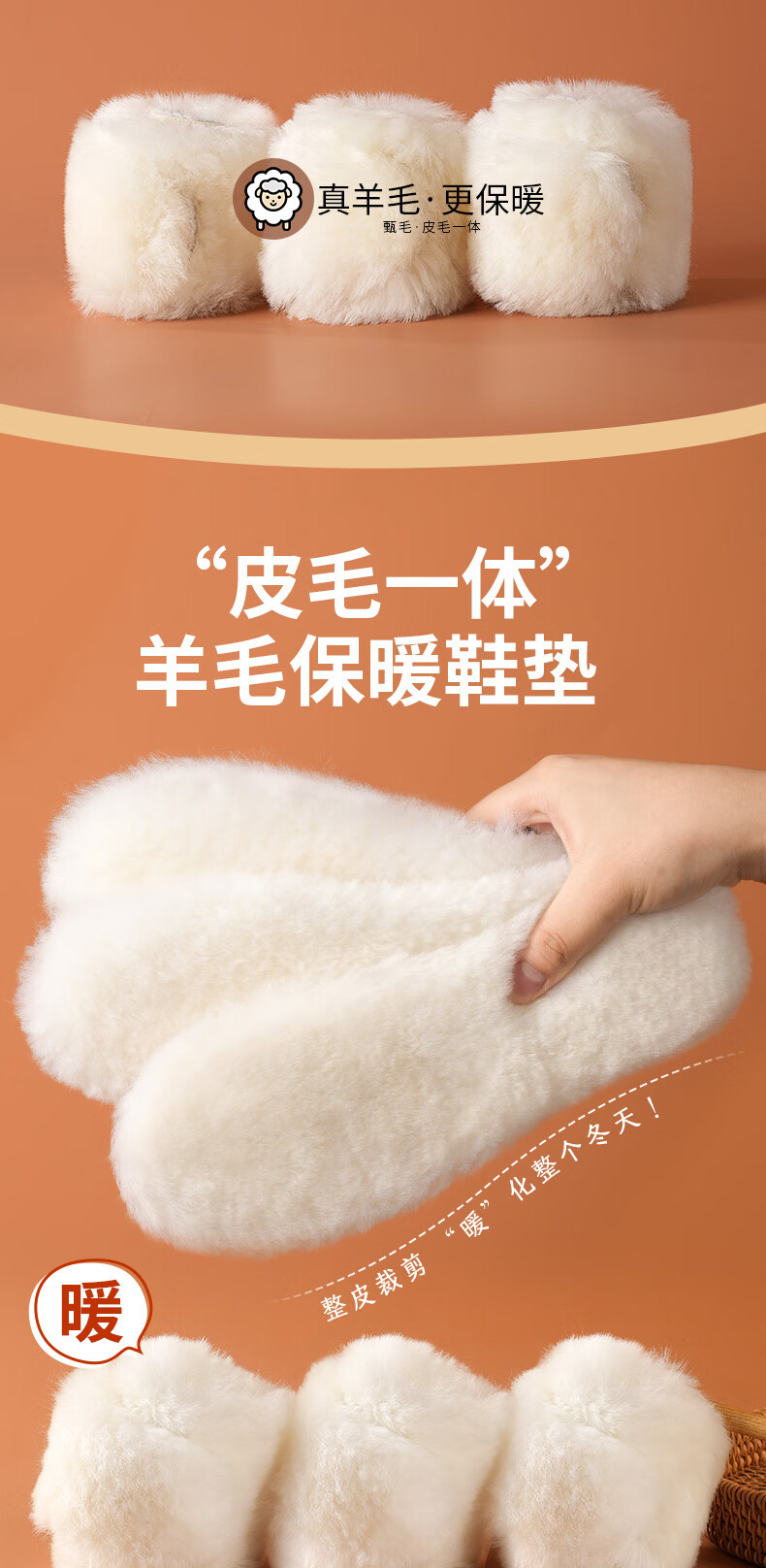 JVBV适用ugg羊毛保暖鞋垫男皮毛一体女加绒加厚冬季专用棉鞋垫 41码
