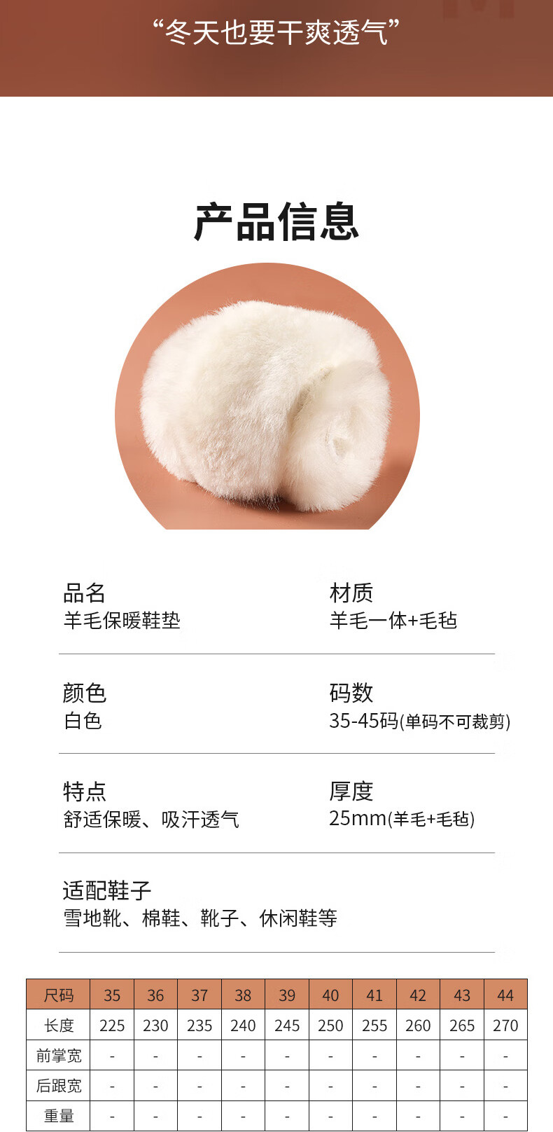 【1双装】羊毛保暖-白色