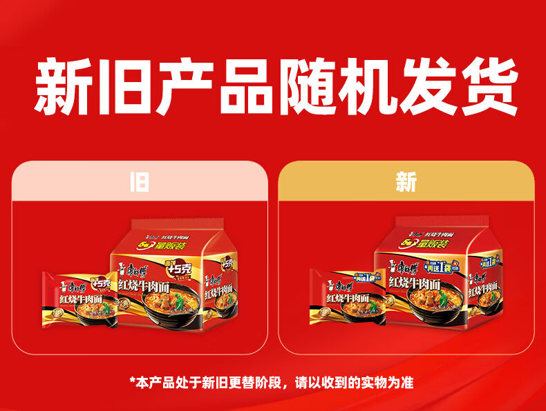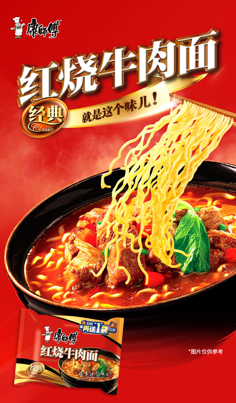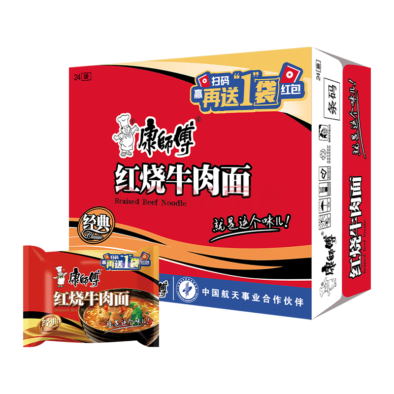 康师傅 方便面 经典红烧牛肉面103g*24袋 泡面袋装整箱速食 方便食品