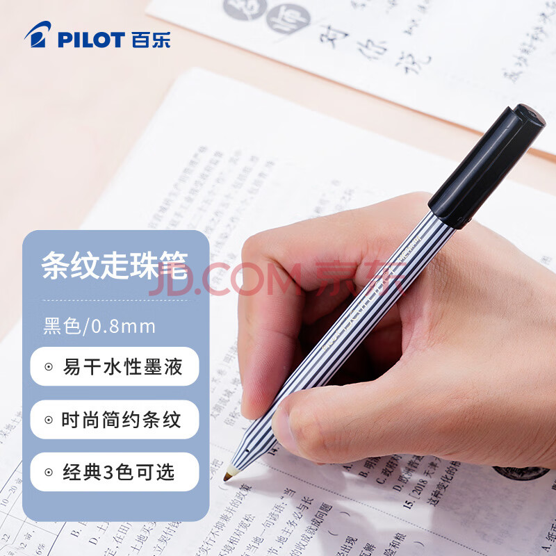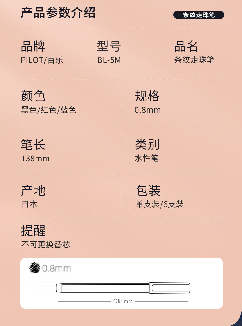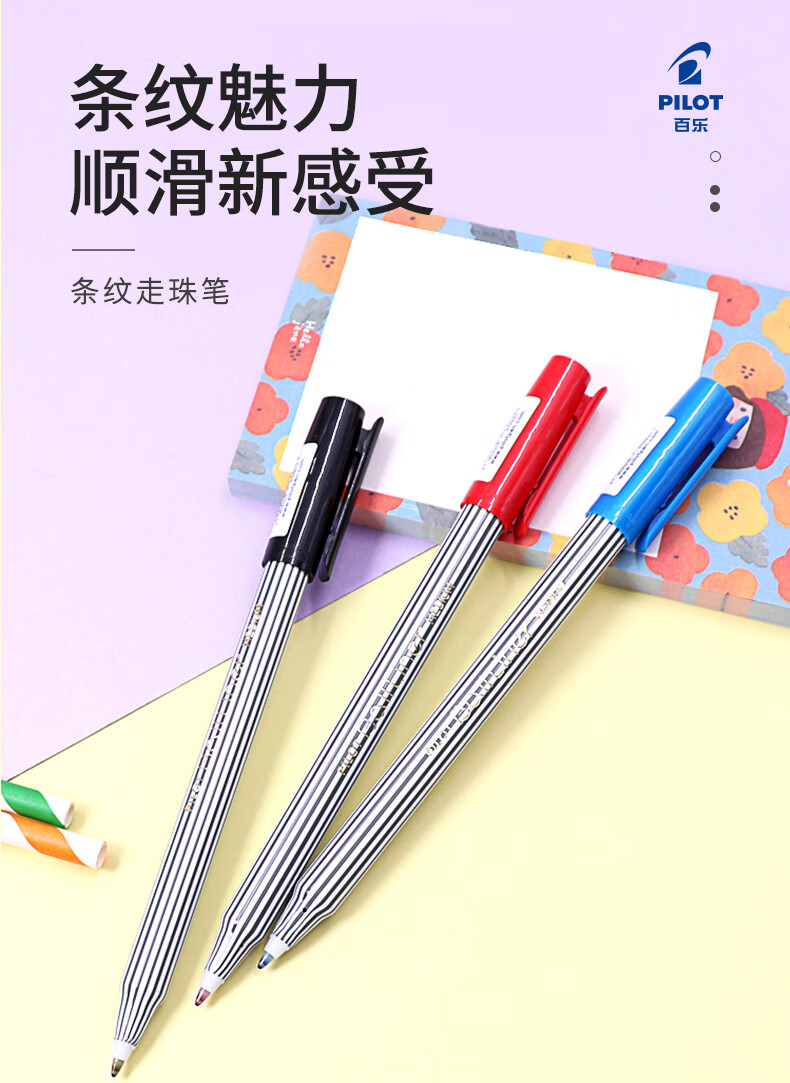 百乐(PILOT)条纹走珠笔中性笔签字笔顺滑水性笔手帐笔高颜值办公用品商务笔BL-5M 0.8mm 黑色单支装