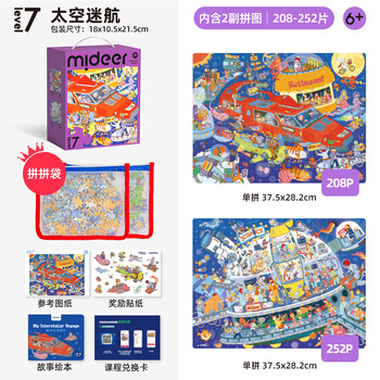 弥鹿(MiDeer)进阶拼图幼儿早教纸质大块拼图7阶-太空迷航(收纳袋款)新年礼物
