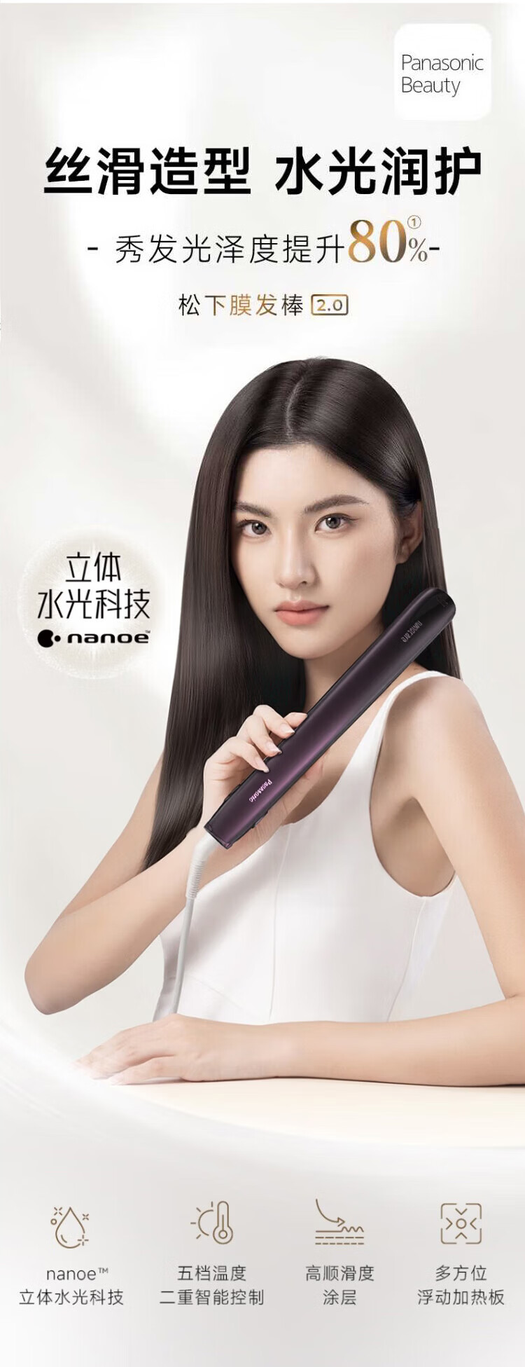 松下(Panasonic)纳诺怡膜发棒2.0直板夹卷直防烫发棒夹板不伤发质送女生便携生日母亲节礼物EH-HN10