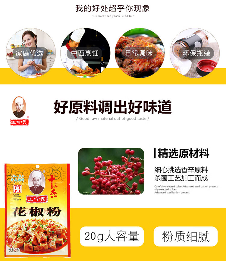 王守义 花椒粉 20g袋装 纯花椒研磨 腌撒烹拌炒 多场景调味 中华老字号