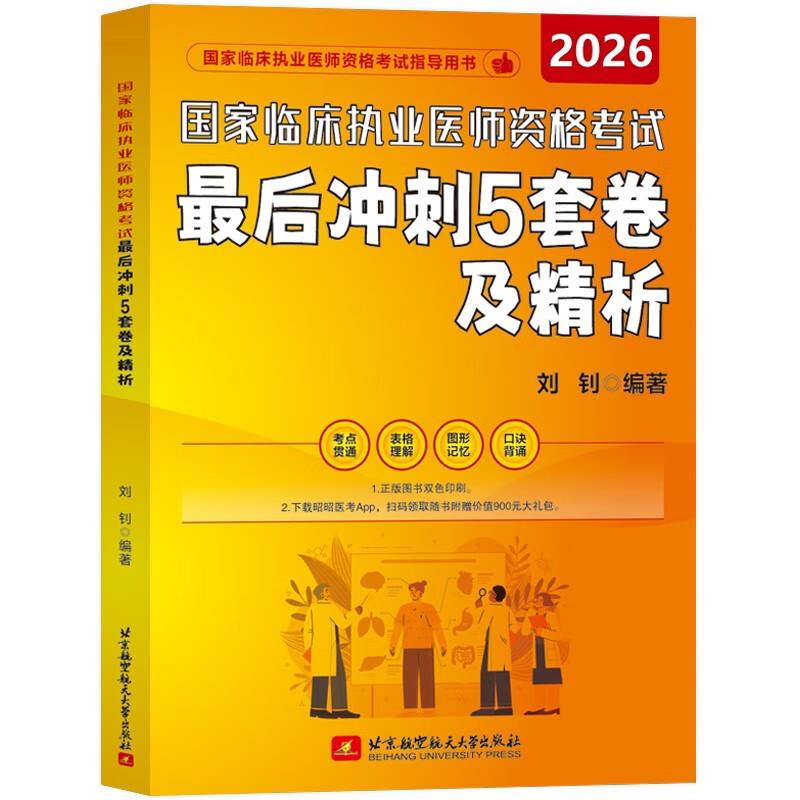 本书是刘钊老师(笔名:昭昭老师)集多年对国家临床执业医师资格考试辅导的经验和命题规律,严格按照《国家临床执业医师资格考试大纲》编写的5套冲刺试卷及精析,每套试卷中都包含了生物化学、生理学、病理学、药理学、医学心理学、医学伦理学、医学统计学、预防医学、卫生法规、内科学(含诊断学)、传染病与皮肤性病学、神经病学、精神病学、外科学、妇产科学、儿科学、中医学和实践综合等方面的内容。每套试卷分为4个单元,每个单元150道题目,共计600道题。