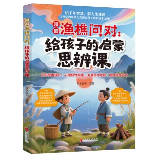 本书是一本专门为6岁以上孩子打造的图解哲学启蒙书。通过生动有趣的图画和简单易懂的白话文,将北宋思想家邵雍的经典著作《渔樵问 对》改编成孩子们喜爱的故事。本书的每个章节都设计成思辨游戏,比如为什么同样的风景,不同的人看到的不一样?分享真的会让自己 失去吗?书中用孩子熟悉的”鱼钩””柴火”等具体事物,引导小读者思考抽象哲理,培养独立思考能力。特别设计的”互动小问号”板 块,鼓励孩子和家长一起讨论,把哲学思考变成亲子间的趣味对话。本书把深奥的古典哲学转化成孩子能理解的日常话题,既保留了原典 的智慧精华,又用鲜活的图说形式让思想”活”起来,是帮助孩子建立批判性思维、学会多角度思考的绝佳启蒙读物。