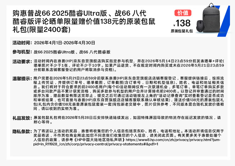 惠普(HP)战66 16英寸高性能轻薄笔记本电脑英特尔酷睿二代Ultra5 225H 32G 1T 2.5K 1年上门