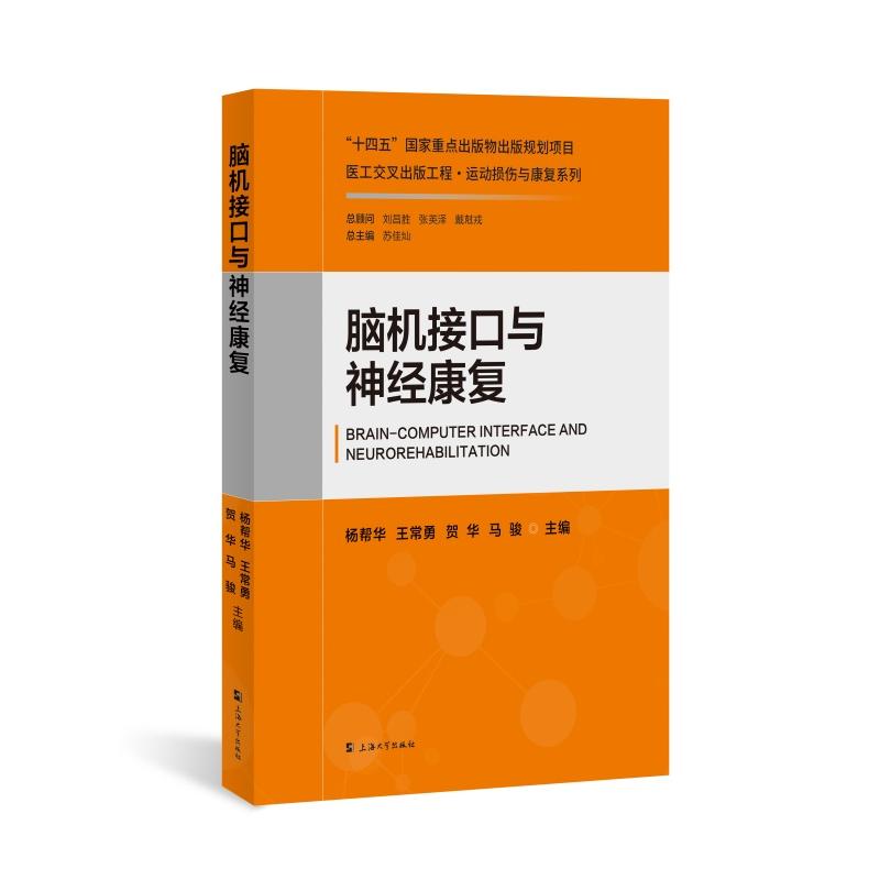 杨帮华,上海大学机电工程与自动化学院、医学院双聘教授,博士生导师,上海市浦江人才教授,主要研究运动想象脑机接口技术,脑电意念智能解码技术、脑机接口技术在医疗康复领域的工程应用包括神经康复等。王常勇,军事医学研究院研究员,国际欧亚科学院院士,国家杰青。贺华,海军军医大学教授,博士,神经外科和脑科学专家。马骏,上海大学机电工程与自动化学院,博士。本书系十四五国家重点出版物规划项目“医工交叉出版工程-运动损伤与康复系列”之一,是一部阐述基于脑机接口的神经康复科学原理和技术的著作。脑机接口技术是通过读取特定的脑神经信号,构建解析模型获取用户的逻辑意图与精神状态,从而建立大脑与外部设备的直接连接通路。本书涵盖了脑机接口技术的基本原理、方法、及关键技术;介绍了脑机接口技术的典型范式和脑机交互系统的实现(包括SSVEP、P300、运动想象等);阐述了对大脑活动信息的测量、处理、特征提取方法与信号分类算法;统计了使用脑机接口神经康复技术的典型疾病类型;论述了脑机接口技术作用于神经康复领域的核心科学原理以及脑机接口在神经康复治疗的临床应用与经验。
