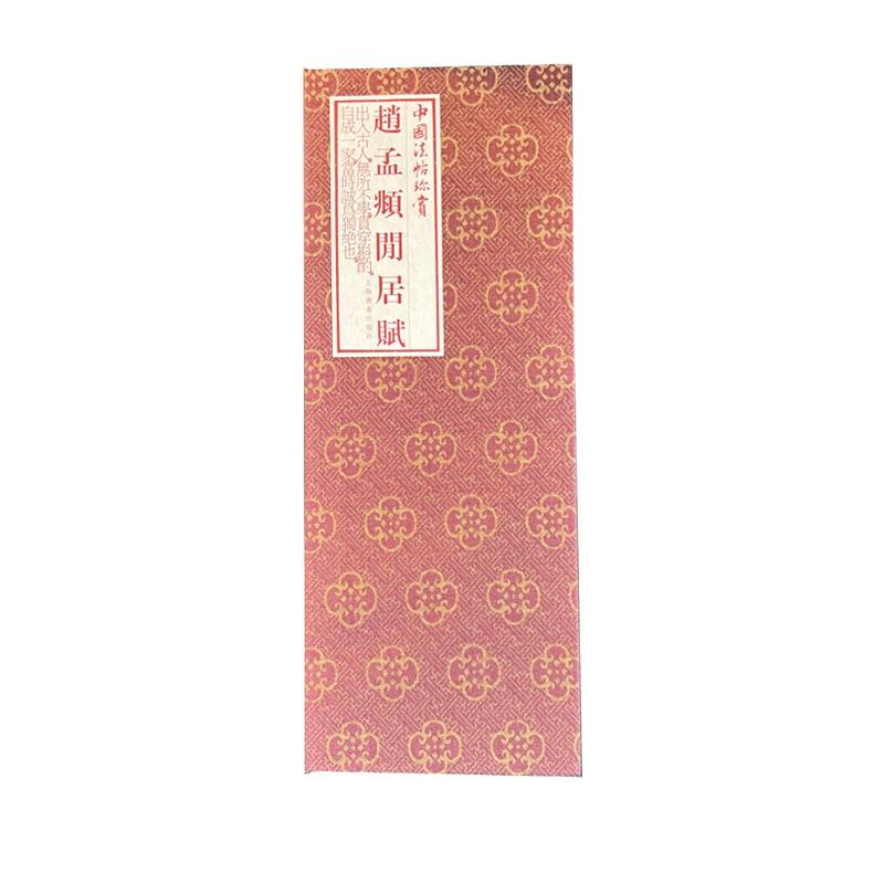 赵孟頫《闲居赋》,行书,,内容为西晋著名文学家潘岳《闲居赋》一首,五十六行,凡六百二十七字,款署子昂,未署书写年月,今藏台北故宫博物院。此卷为赵孟頫晚年所书。此册行书用笔温润圆融,笔力遒劲,结字秀美妍雅,可谓锋势备全,笔笔到位,当为赵孟頫传世书法精品。经折装的装帧形式则可以最大程度地呈现原帖的风貌。