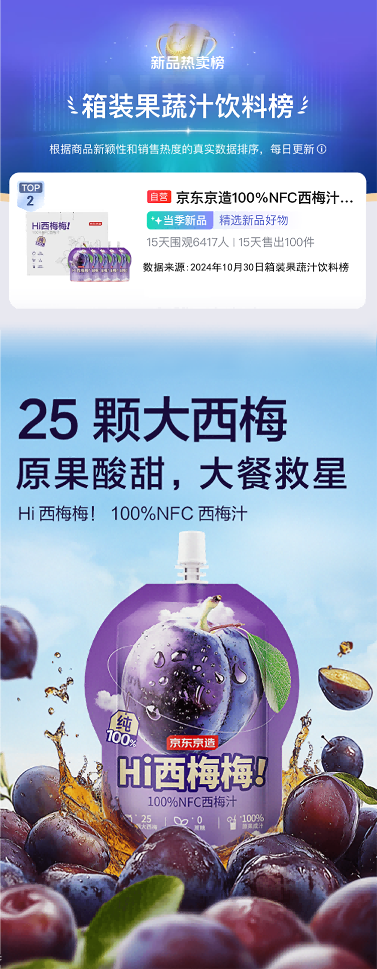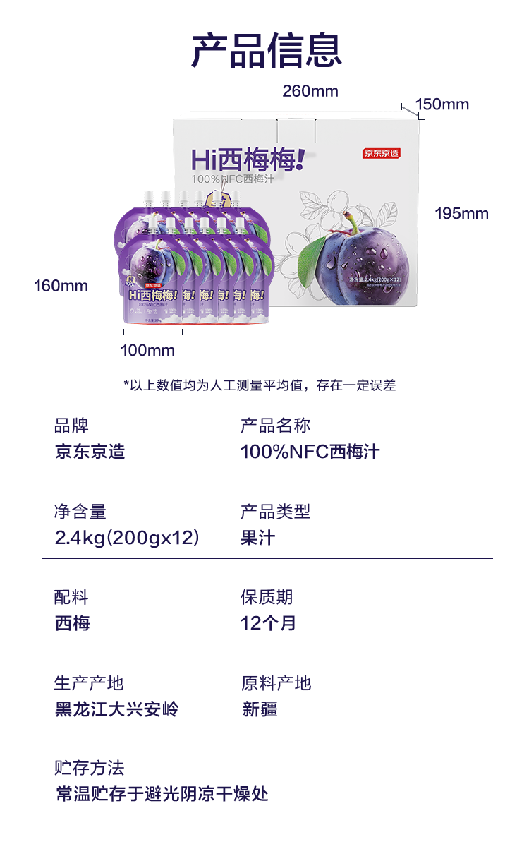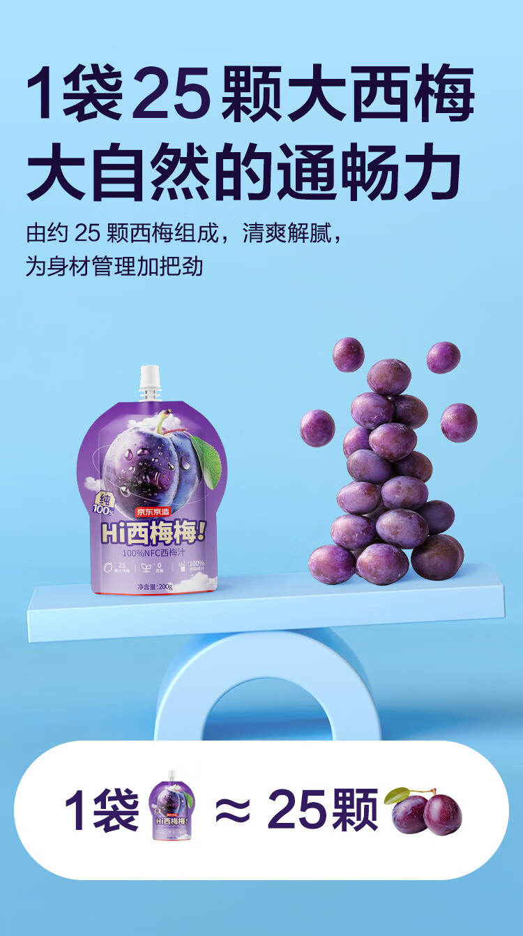 京造100%NFC西梅汁200g*12精制礼盒0脂0蔗糖原汁膳食纤维解腻大餐救星