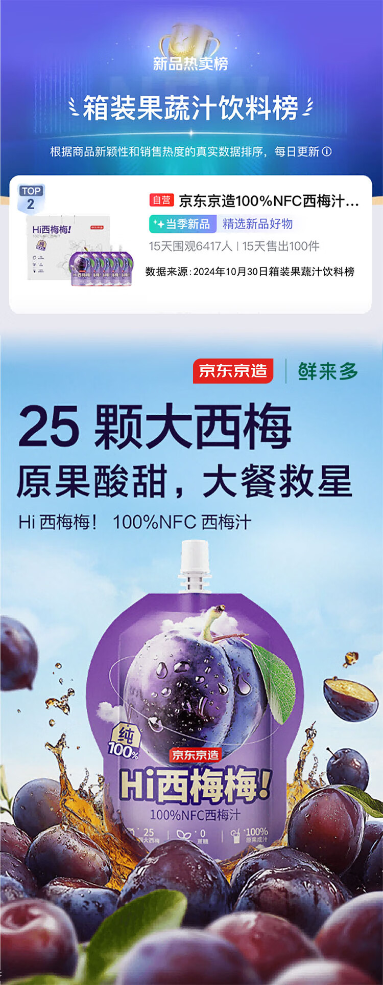 京造鲜来多100%NFC西梅汁200g*12礼盒0脂0蔗糖膳食纤维解腻