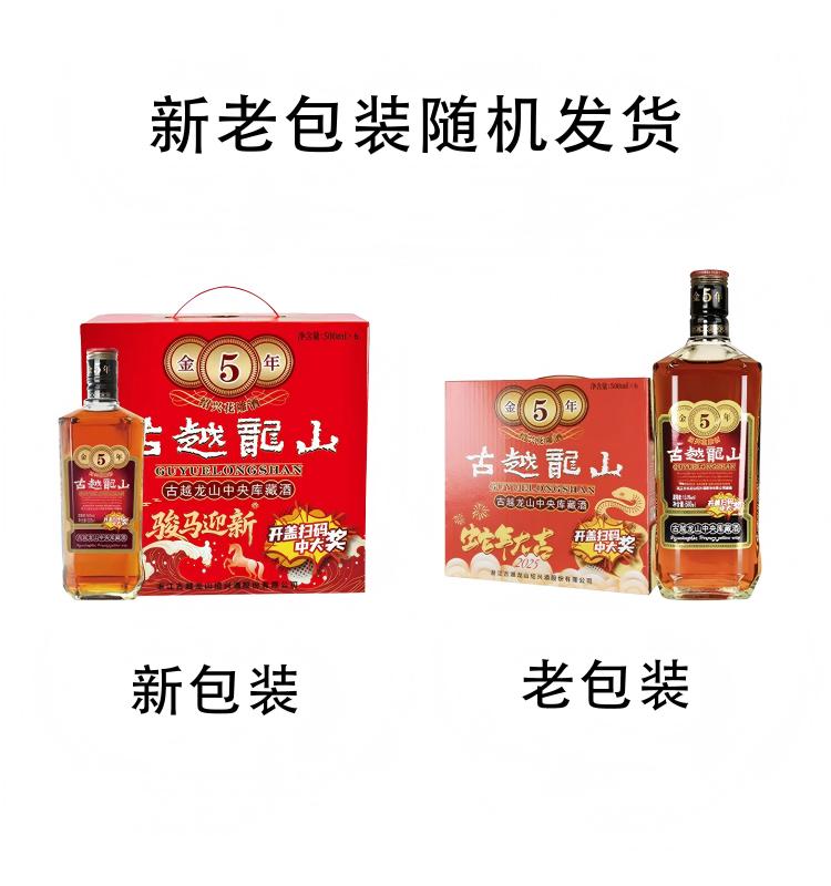古越龙山库藏金五年 半干型 绍兴黄酒 500ml*6瓶 整箱装 上海版