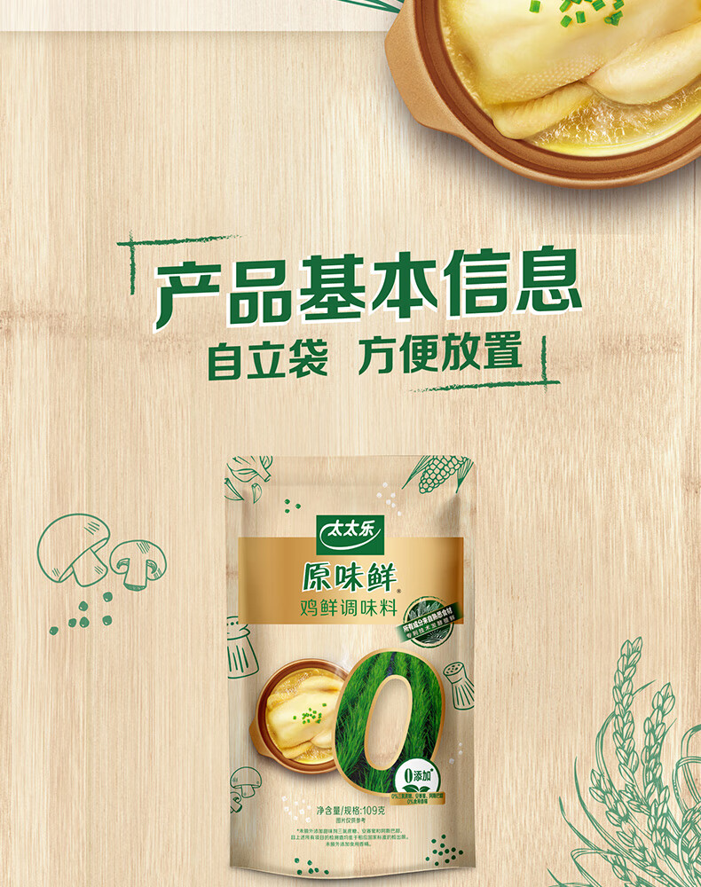 太太乐原味鲜 鸡鲜调味料 109g 鸡精 0添加配料简洁