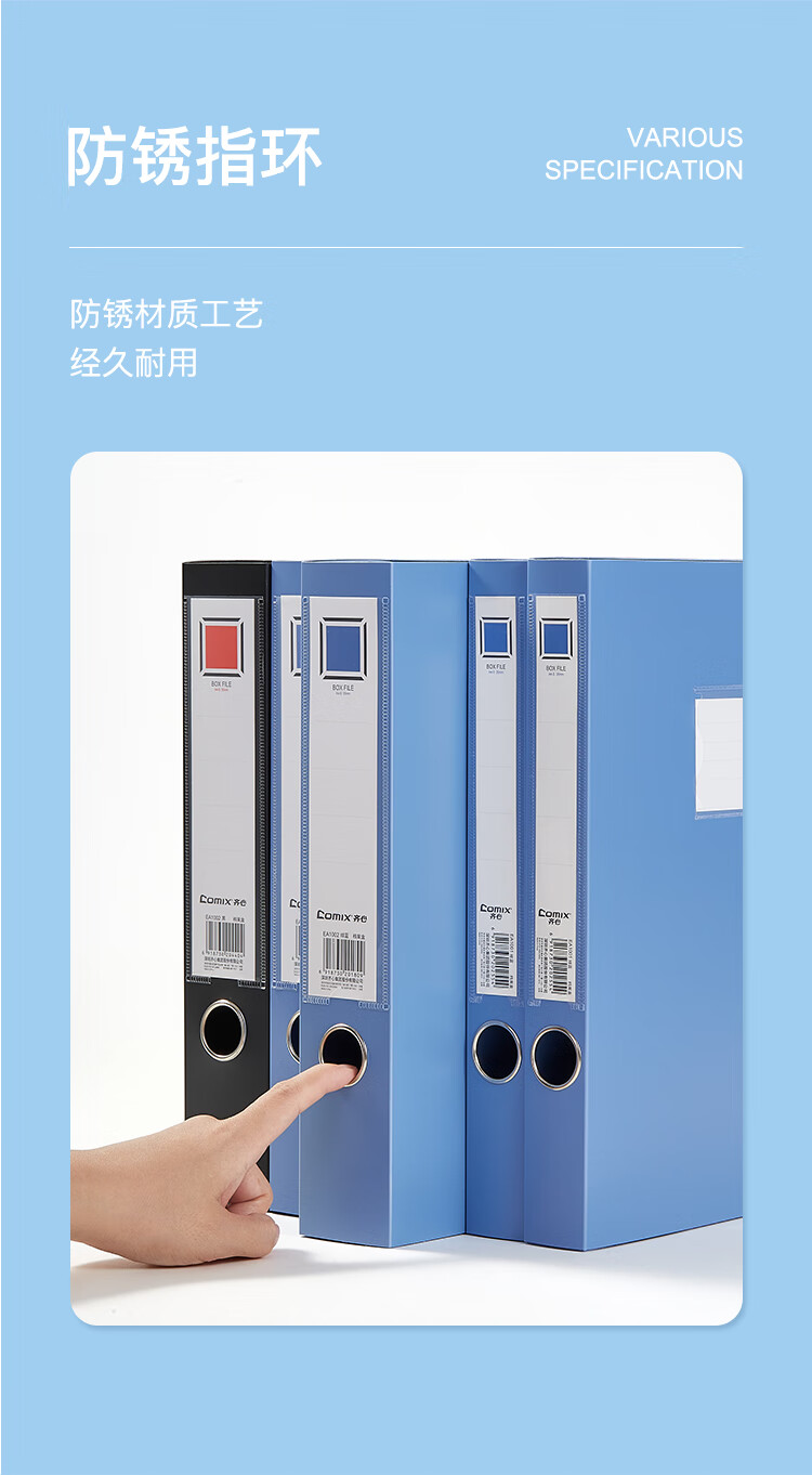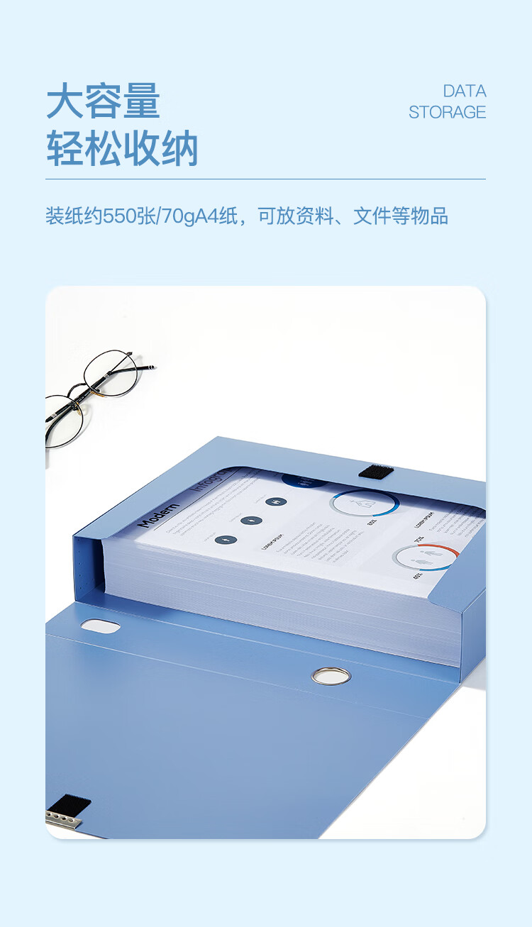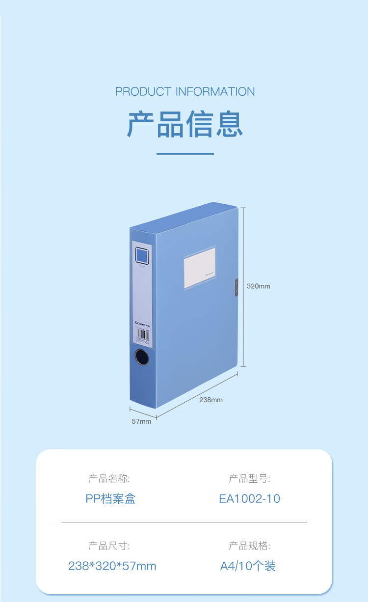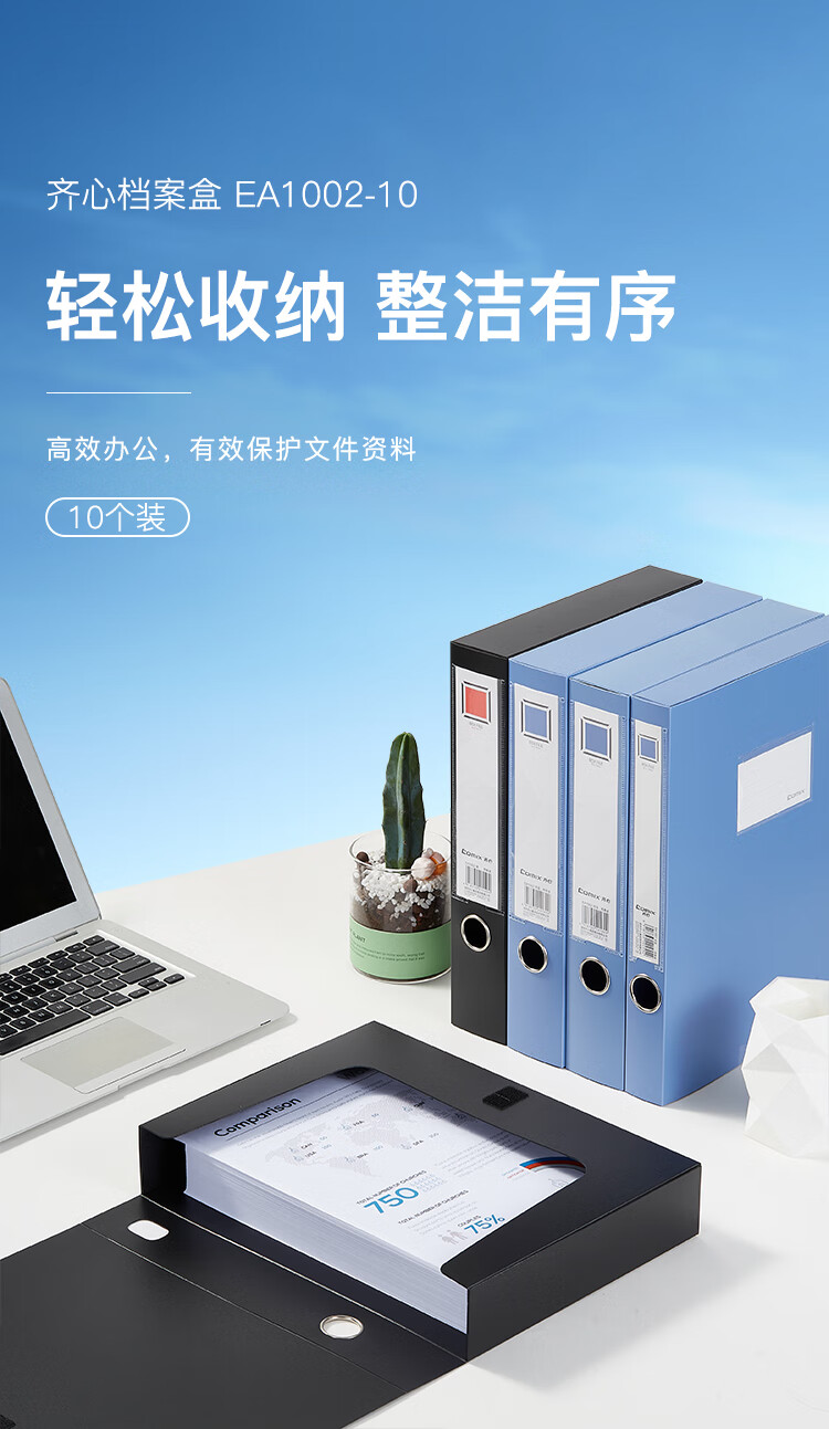 齐心(COMIX)10只A4档案盒55mm粘扣文件盒加厚塑料资料盒凭证人事城建文件收纳盒办公财会用品蓝色EA1002-10