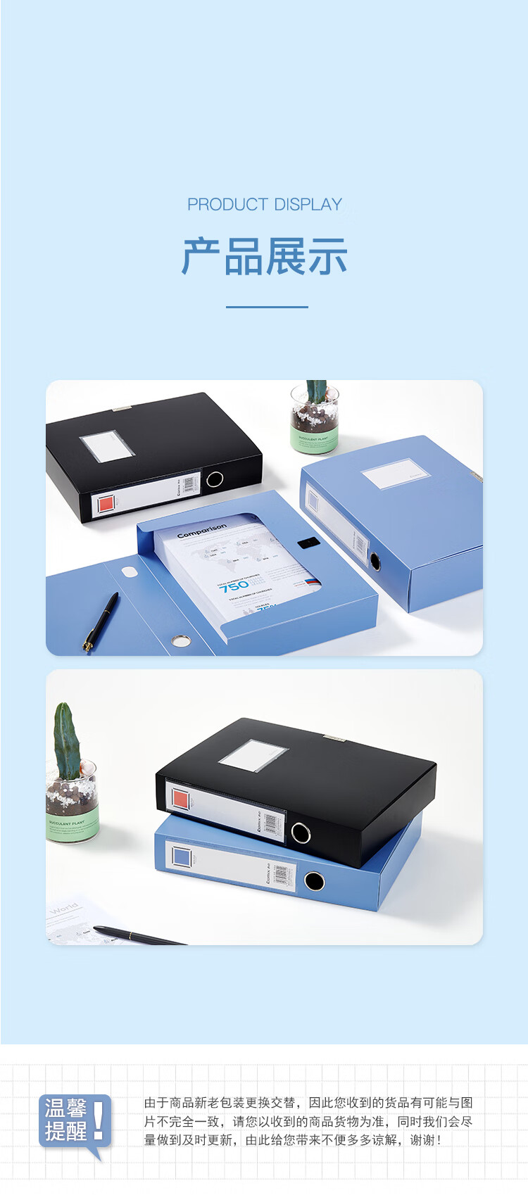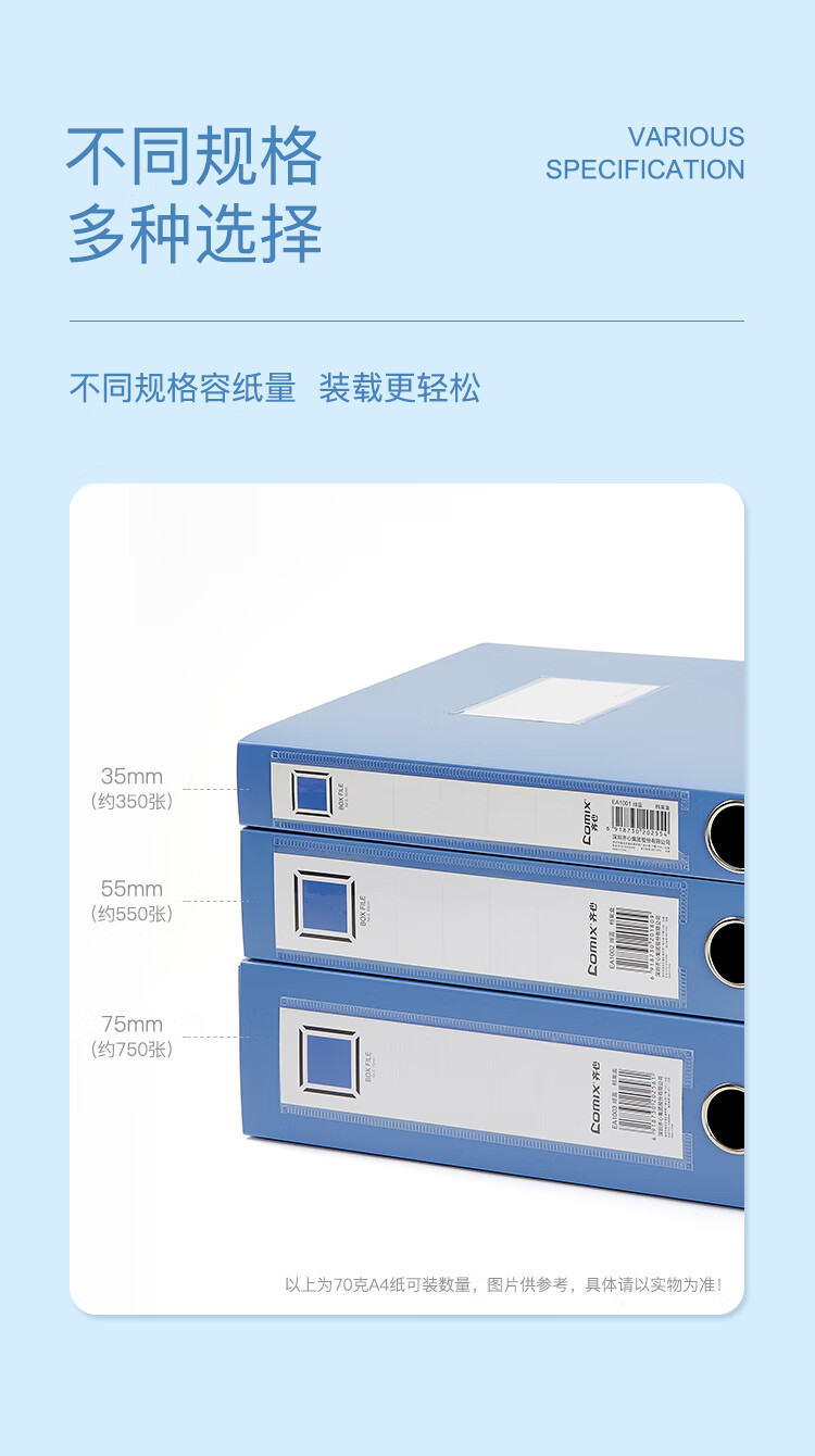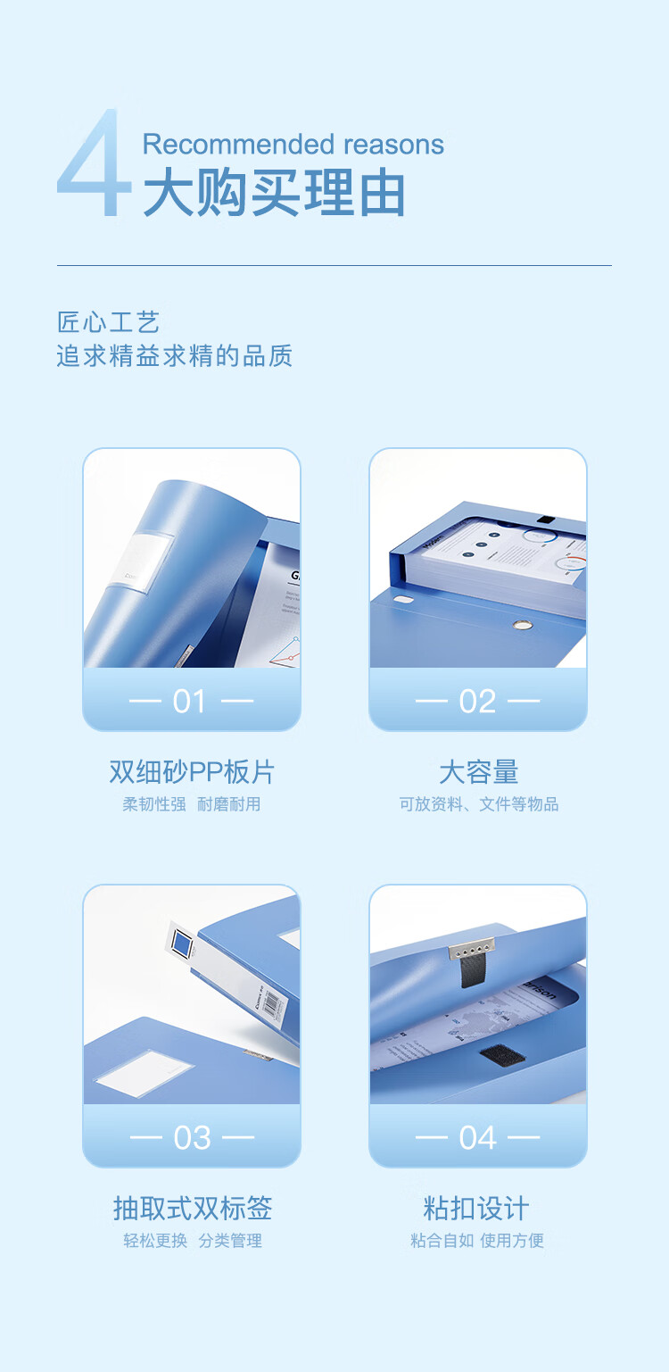 齐心(COMIX)10只A4档案盒55mm粘扣文件盒加厚塑料资料盒凭证人事城建文件收纳盒办公财会用品蓝色EA1002-10