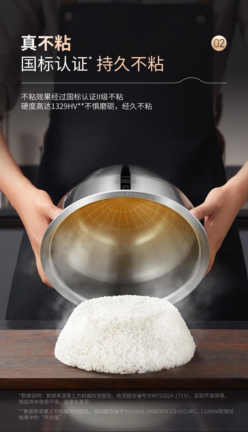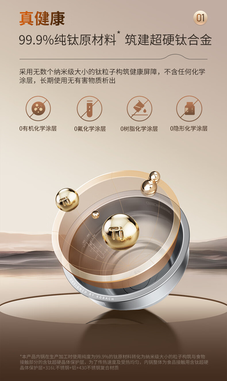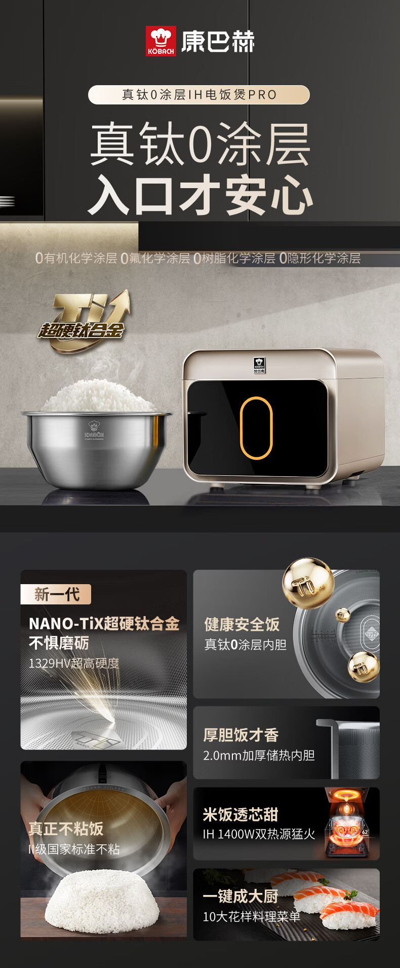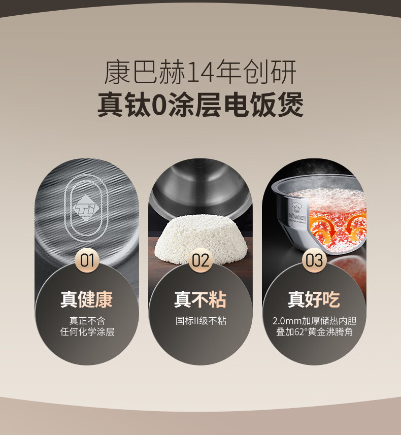 康巴赫电饭煲0涂层纯钛板材内胆IH电磁加热智能电饭锅母婴级多功能家用2-8人不粘锅大火力Pro星耀金 3L