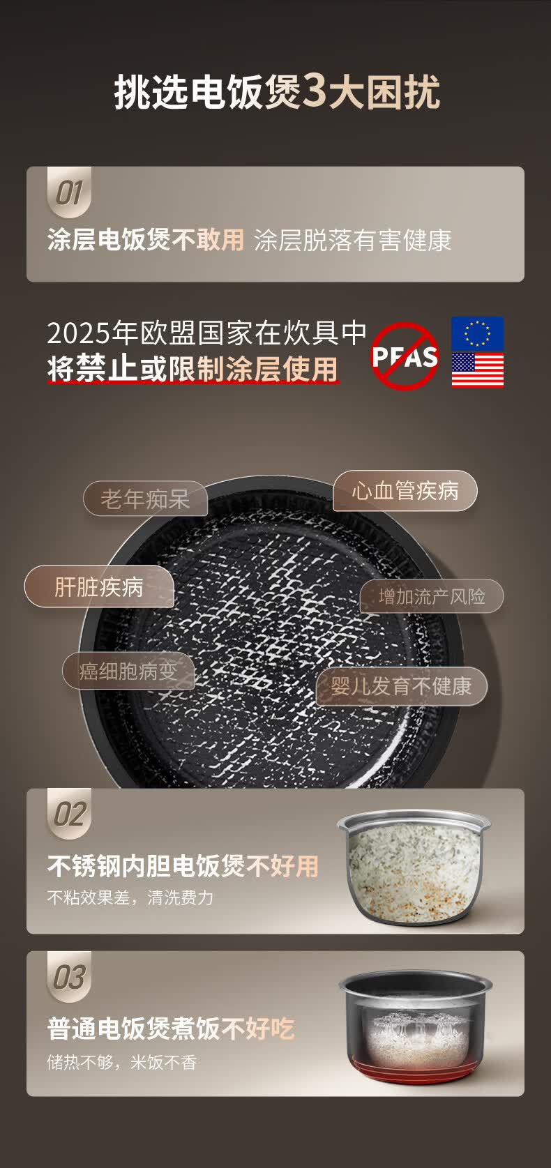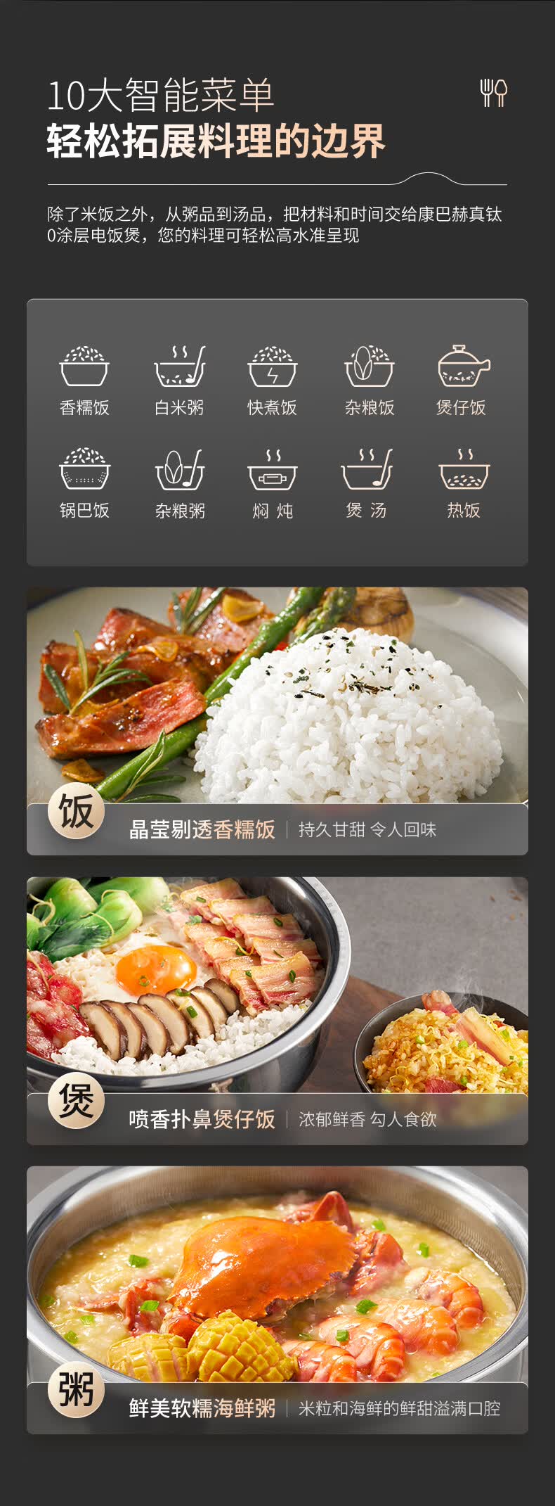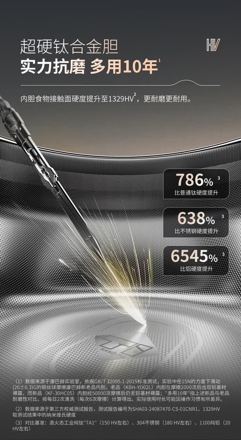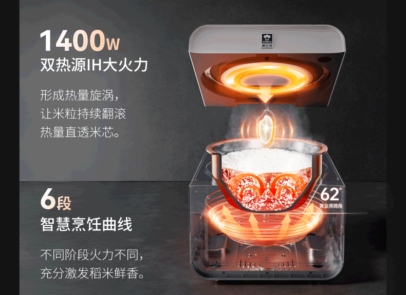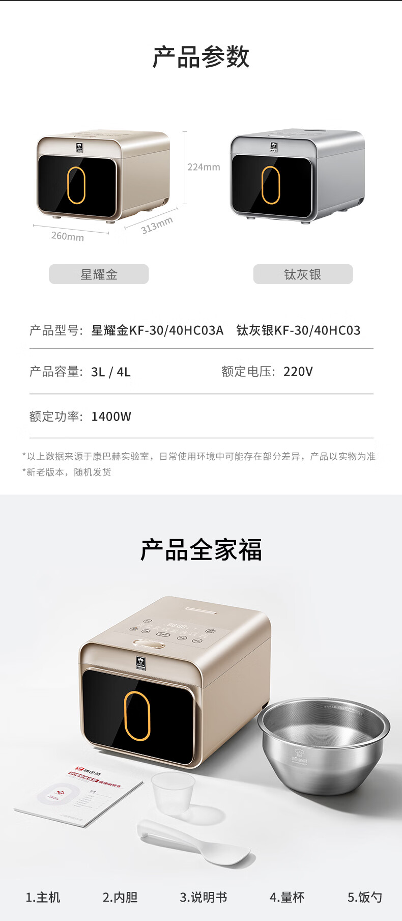 康巴赫电饭煲0涂层纯钛板材内胆IH电磁加热智能电饭锅母婴级多功能家用2-8人不粘锅大火力Pro星耀金 3L