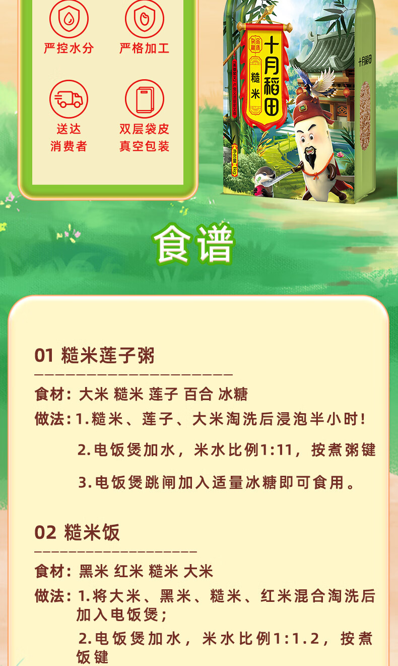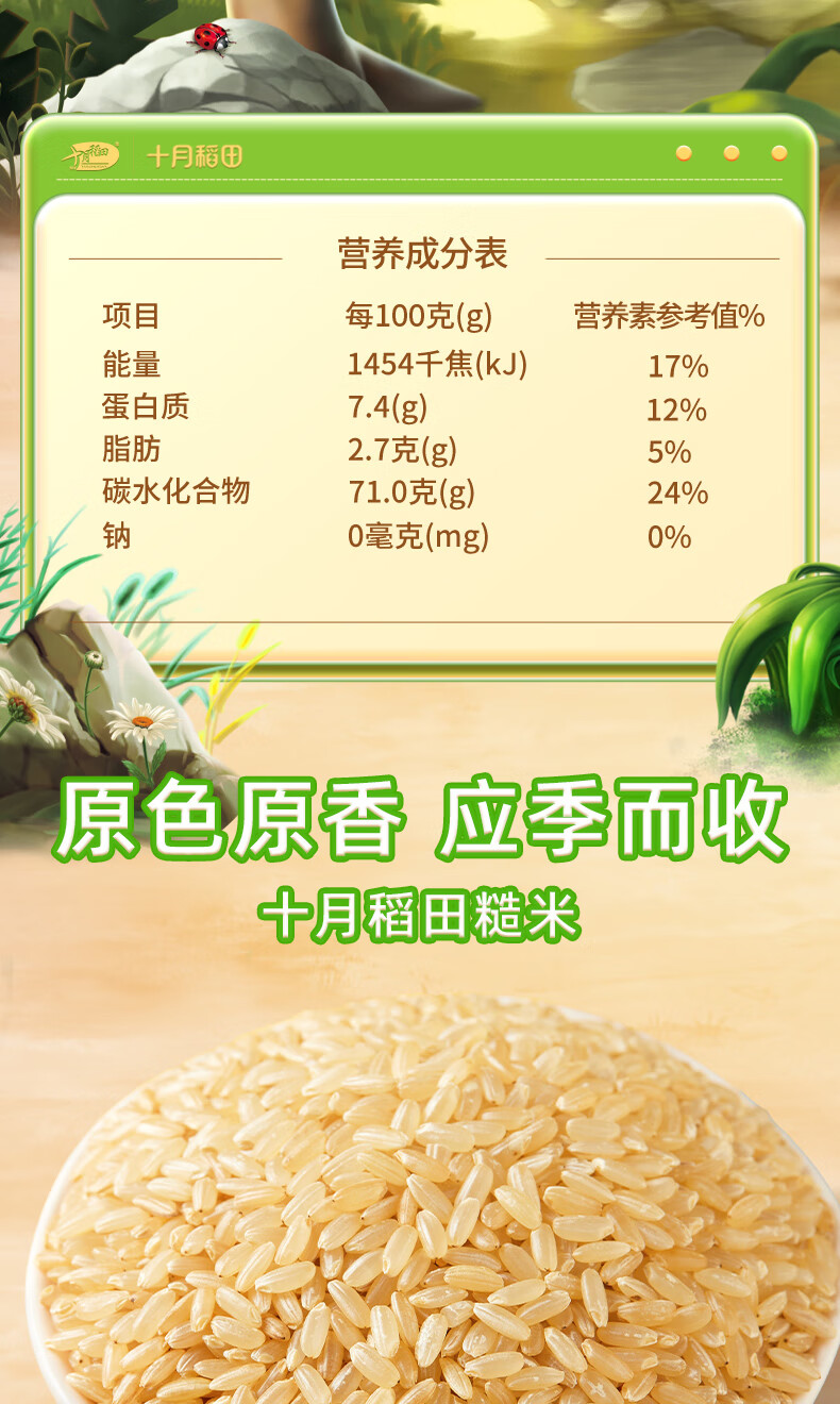 十月稻田 糙米 2斤 低脂粗粮 杂粮米新米 保留胚芽 粥米 全谷物