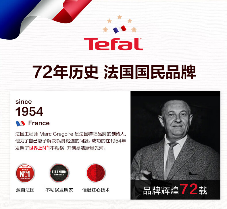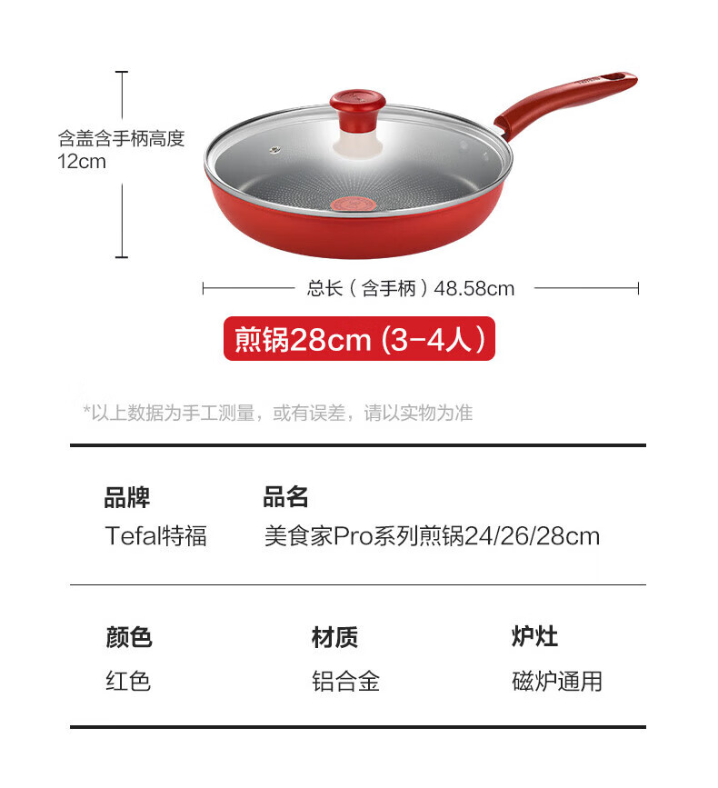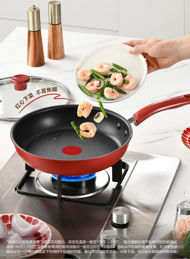 特福(Tefal)平底锅家用牛排不粘煎锅少油烟有钛煎饼锅电磁炉燃气灶通用28cm