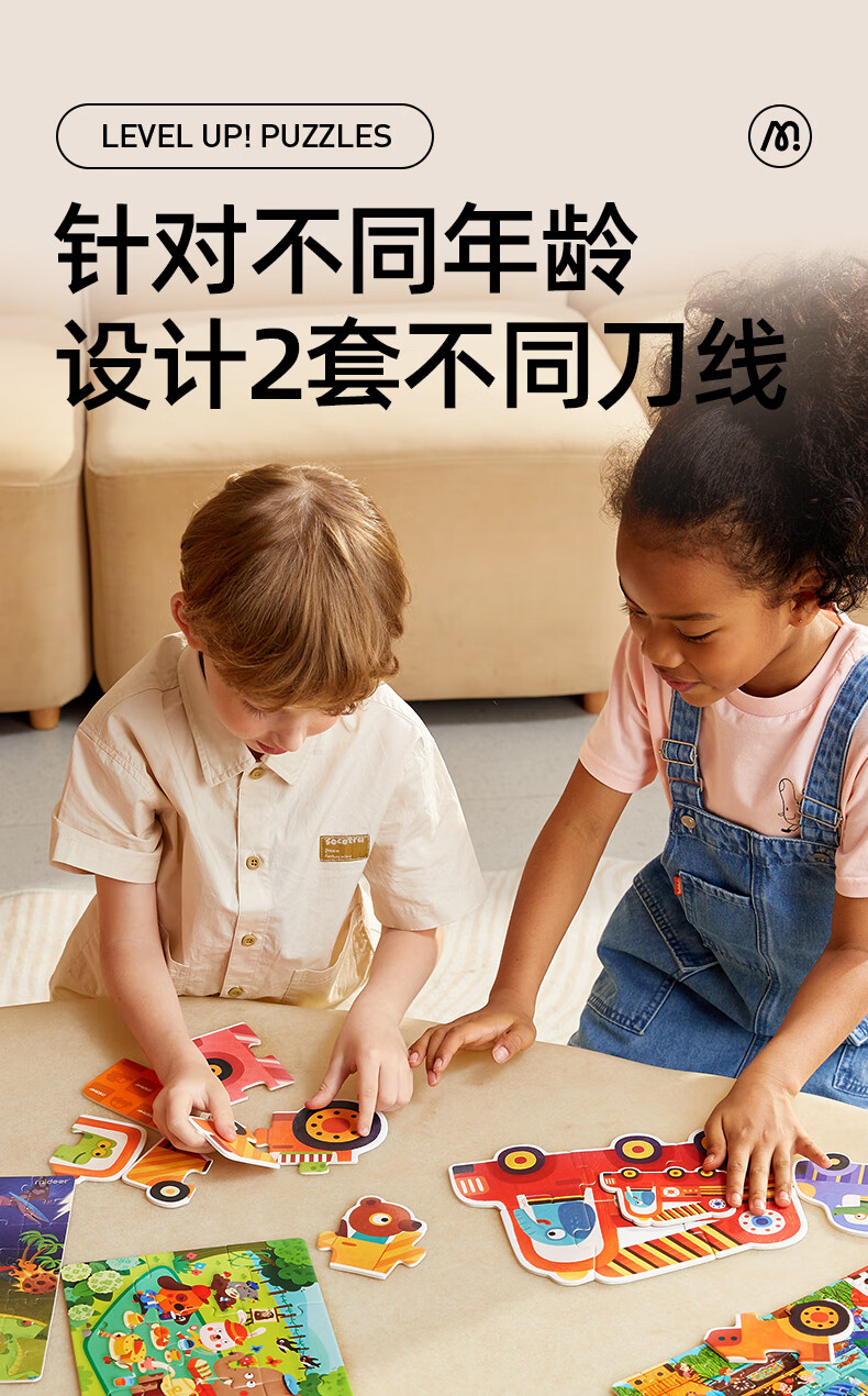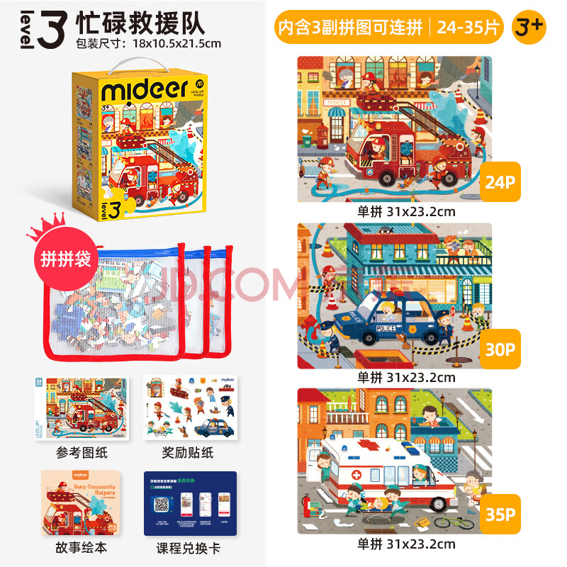 弥鹿(MiDeer)进阶宝宝幼儿纸质大块拼图3阶-忙忙碌碌救援队(收纳袋款)新年礼物