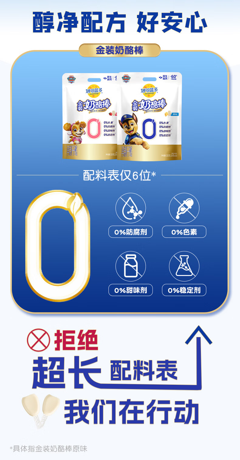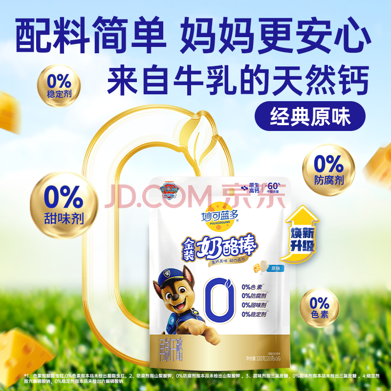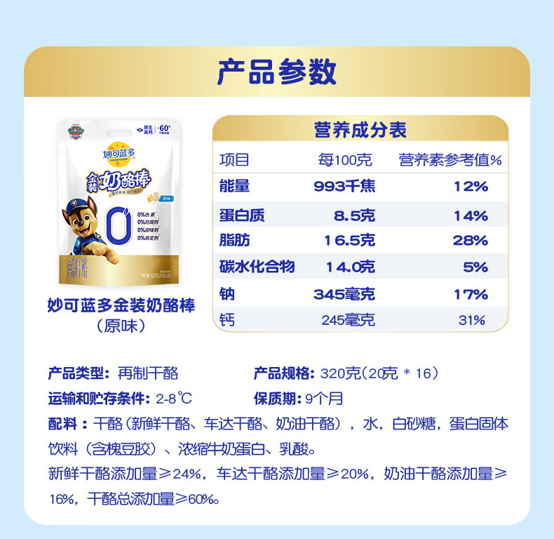 妙可蓝多金装奶酪棒320g原味 60%干酪0%防腐剂甜味剂稳定剂 营养健康零食