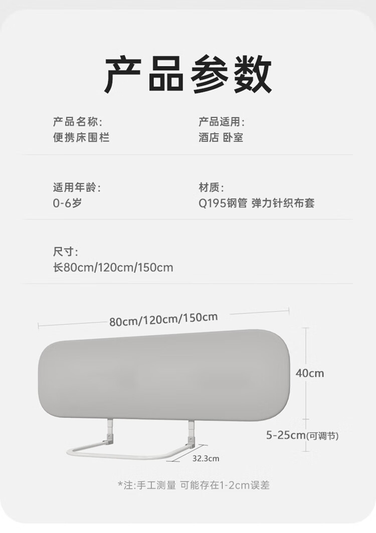 棒棒猪免安装床围栏宝宝防摔防护栏床上简易便携式可折叠挡板 1.5米单面