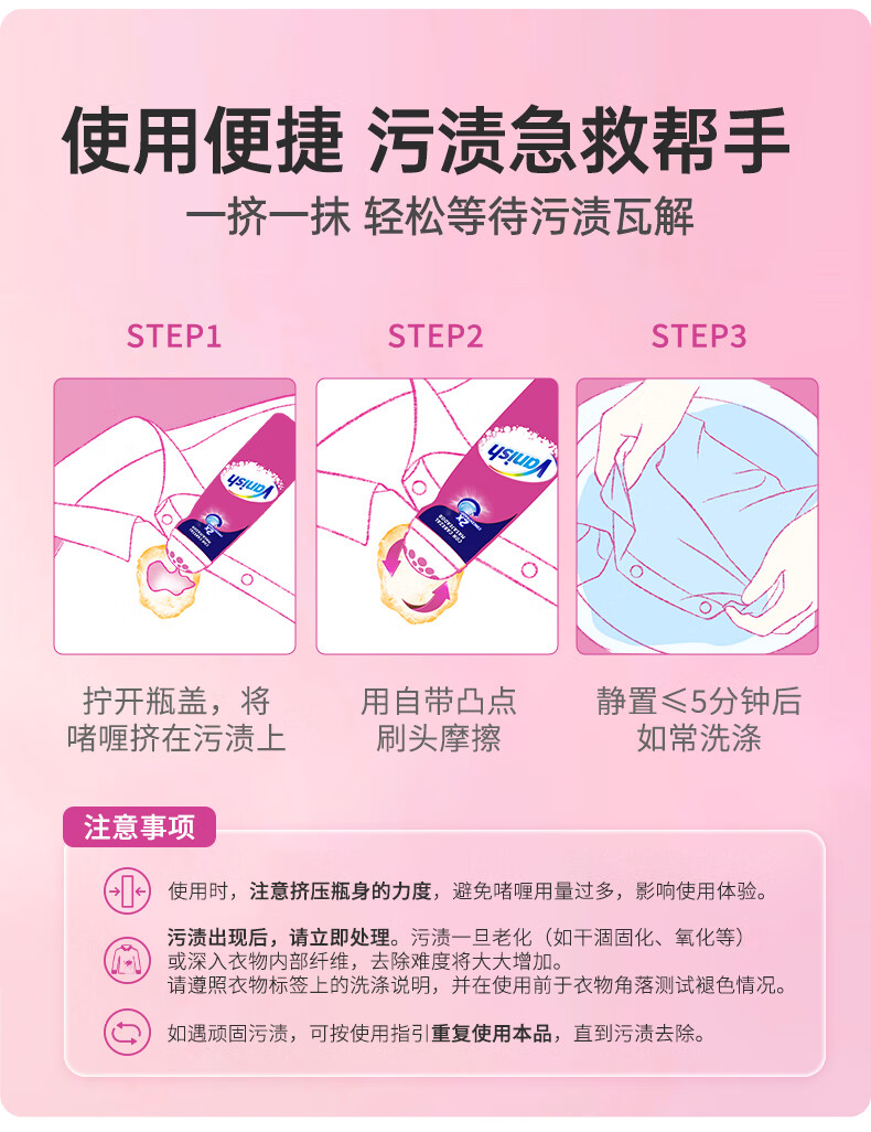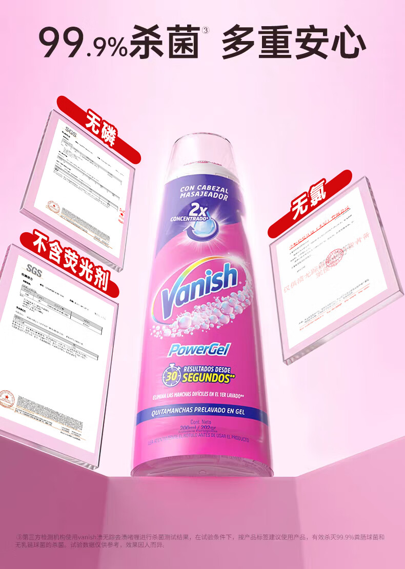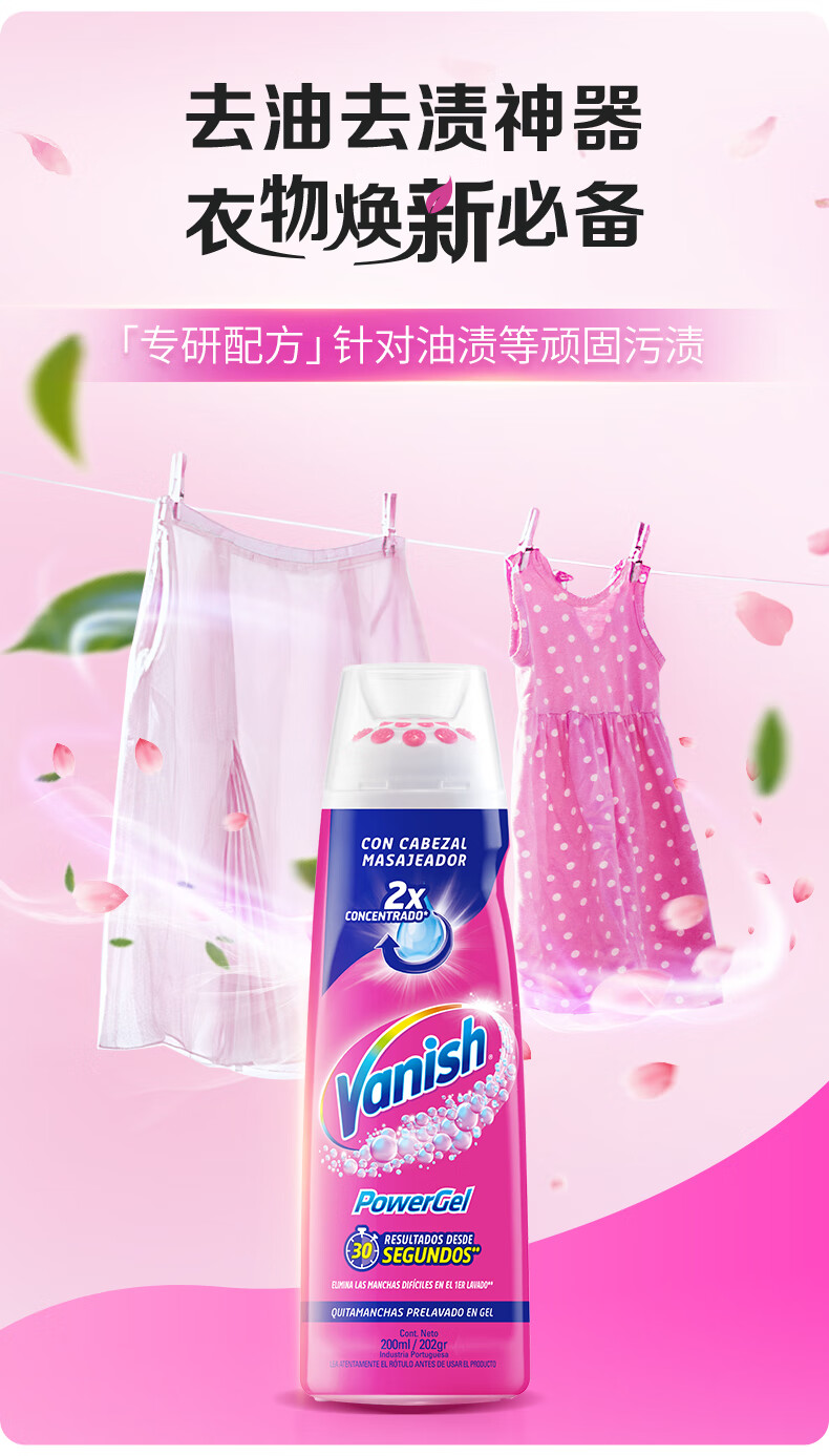 渍无踪(Vanish)去油渍啫喱 去油污渍神器衣服羽绒服清洗剂爆炸盐去污去渍200ml*2