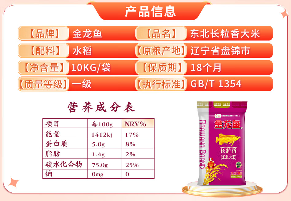 金龙鱼 长粒香大米 东北大米 20斤