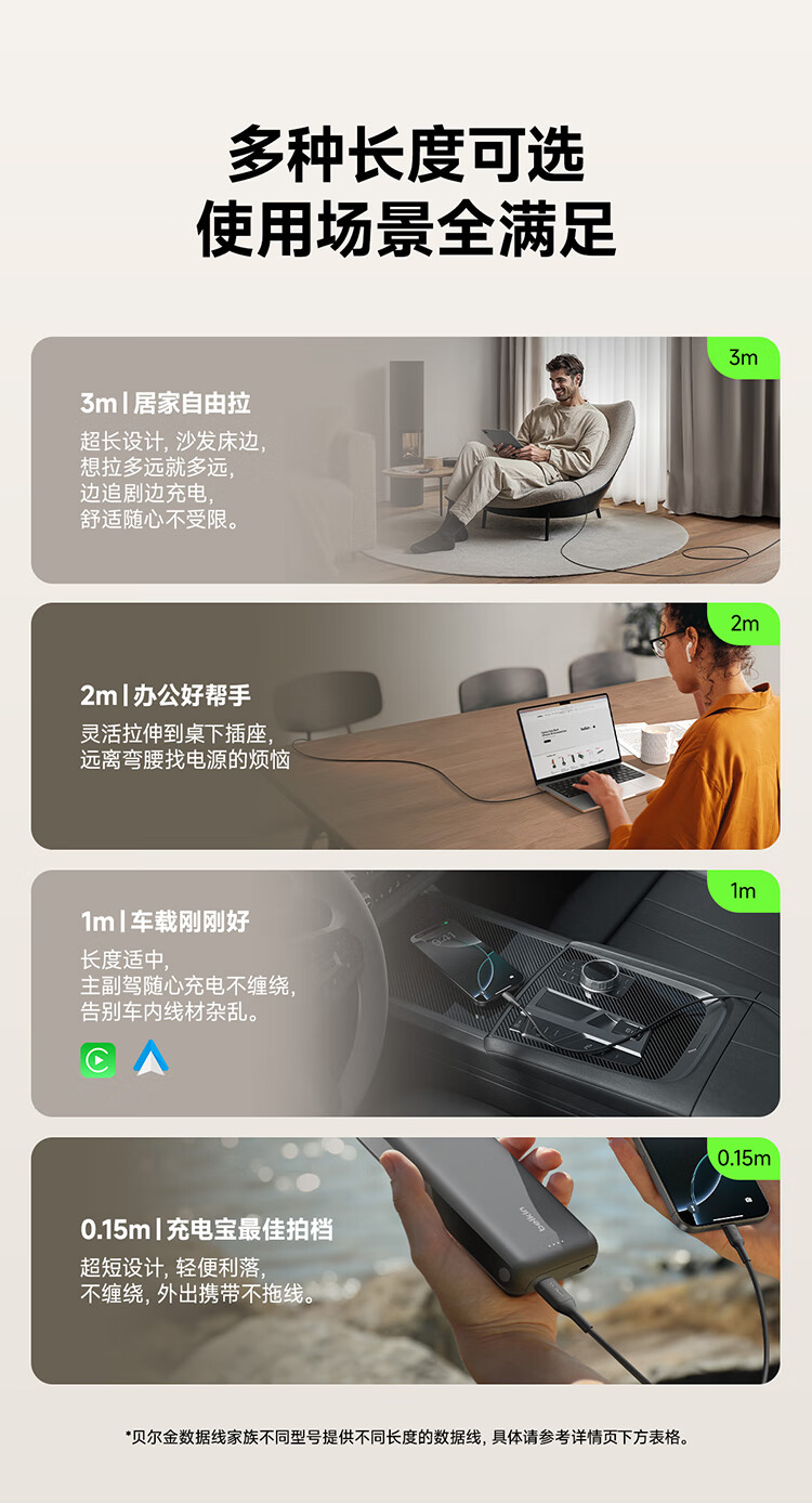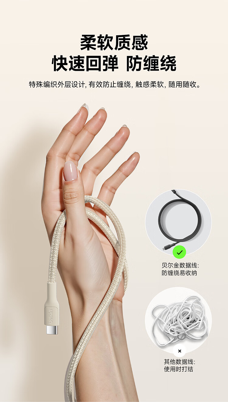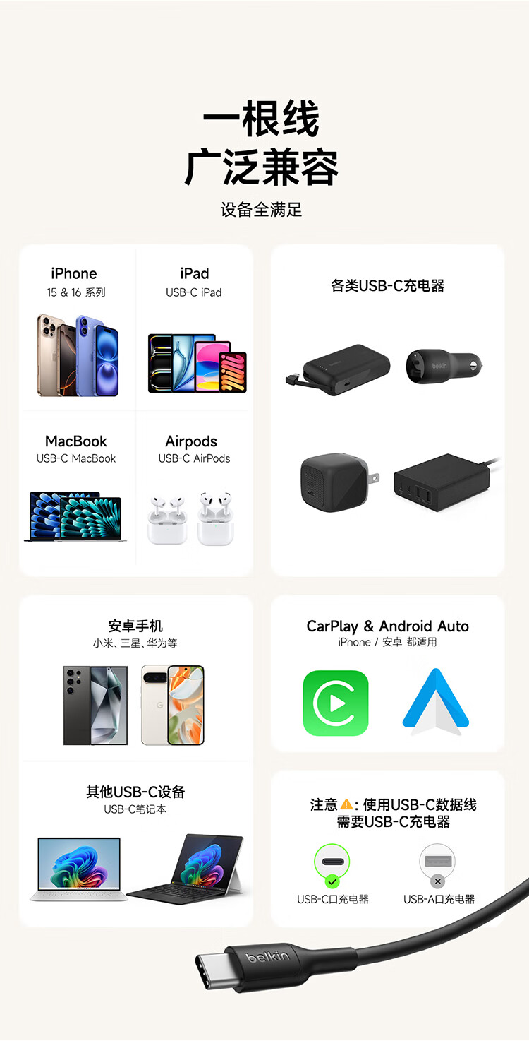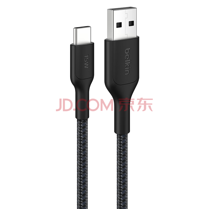 贝尔金(BELKIN)苹果数据线 PD快充 USB-A转Type-C充电线 iPhone充电线 苹果手机充电 1米编织款黑色 CAB022