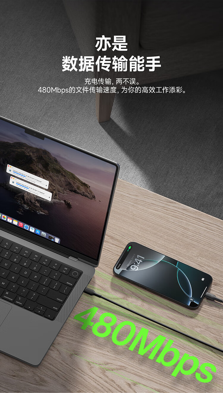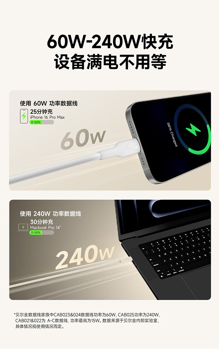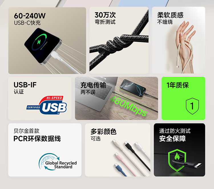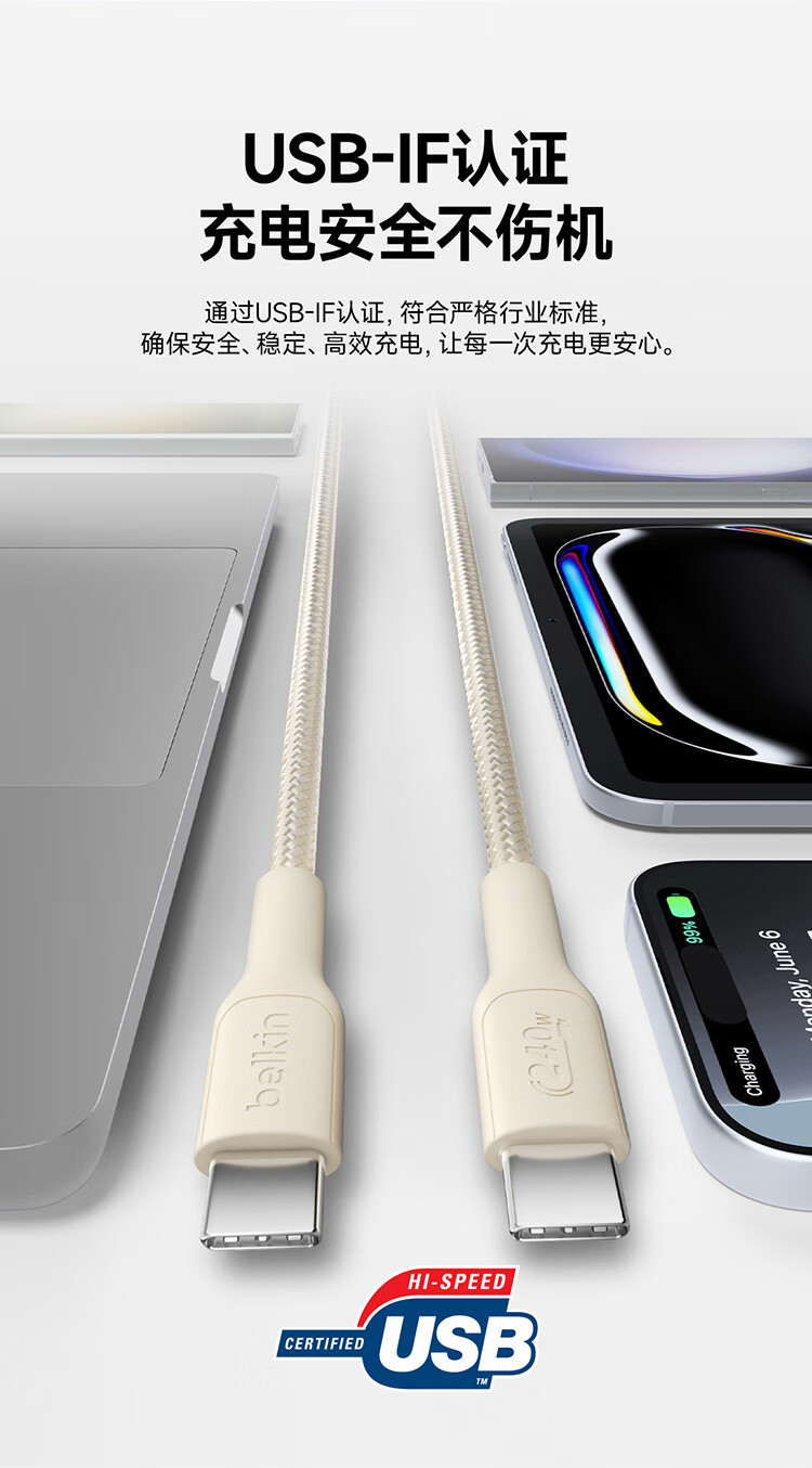 倍思Type-C数据线6A适用华为荣耀超级快充100W/66充电线W
