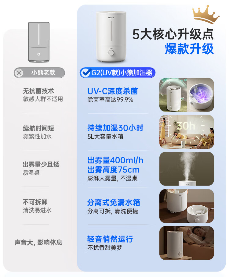 小熊(Bear)【UVC除菌】空气加湿器家用 婴幼儿专用卧室鼻