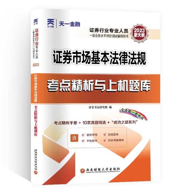 本套试卷由长期从事金融类考试研究的专业老师,依据新版考试大纲和教材,经过精心编写而成.本试卷共分为六个册子,每个册子均采用骑马订,16开本排版印刷,方便考生备考使用.其主要内容有∶10套真题精选((分为5个册子)、考点精析(1个册子).其中,10套真题精选提供详细解析,汇集各类型的证券市场基本法律法规相关知识,可用于检测对教材知识点的掌握程度,便于考生充分掌握大纲要求知识点;考点精析图表结合,考点全面,与试卷完美结合,实现随练随学、举一反三、高效备考.除此之外还赠送PC端和手机端考试模拟系统,具备倒计时功能,界面简洁、操作简便.真实模拟了考试环境,另外还提供了高度总结的思维导图课件、视频课程和在线题库以及备考QQ群等增值服务.
