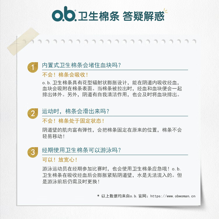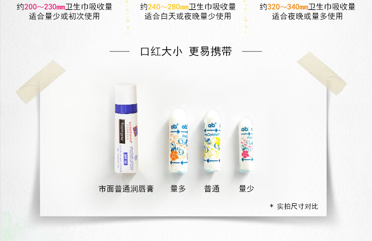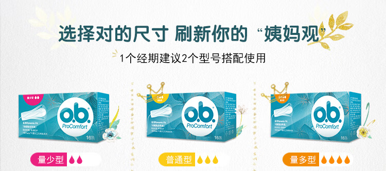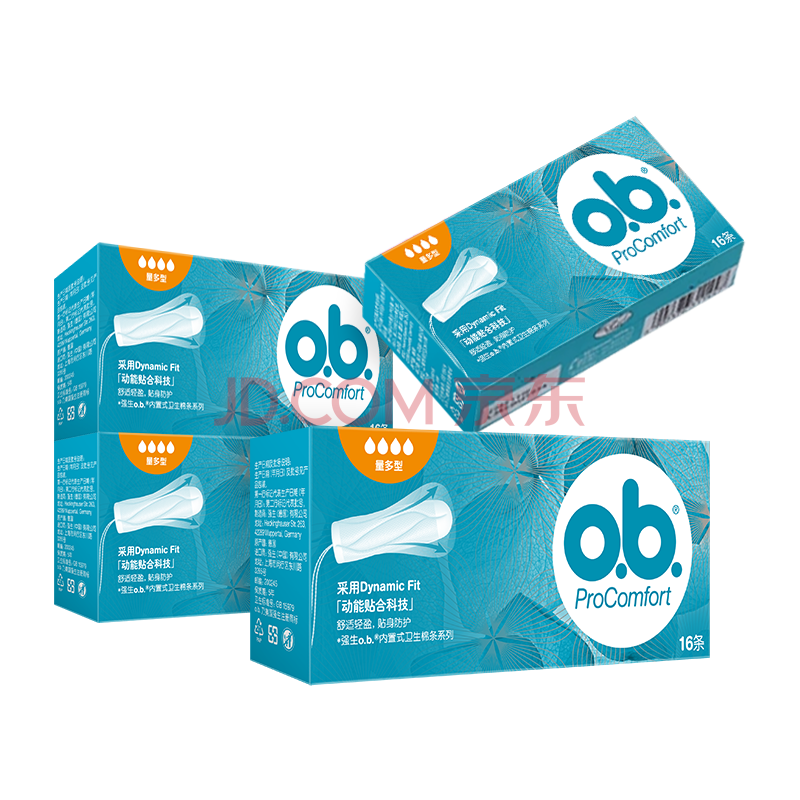 OB卫生棉条卫生巾内置大流量量多型4盒64支进口强生姨妈巾