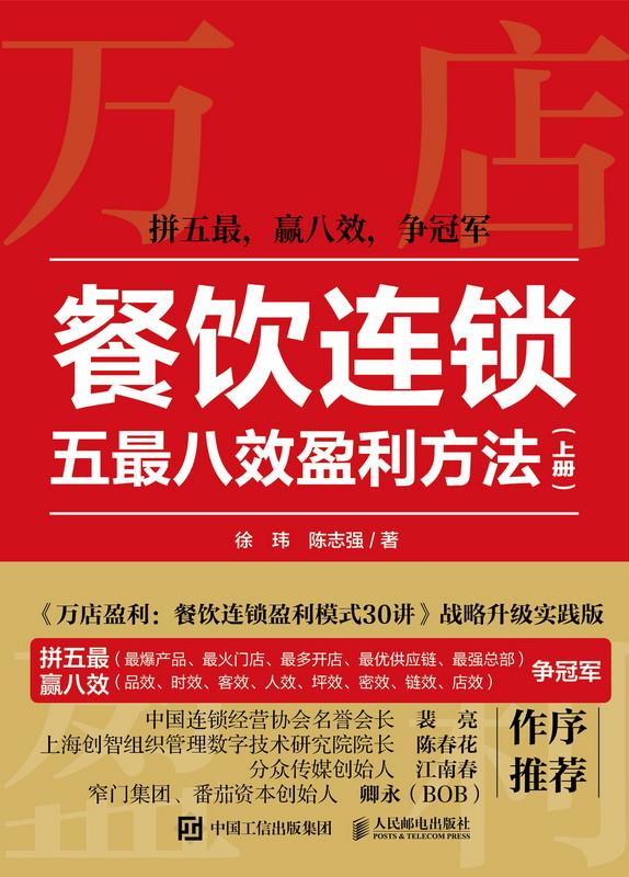 该书致力于助力餐饮企业在高度竞争的市场环境中提升经营收入、增强盈利能力及构建企业竞争壁垒。全书以万店盈利智库独创的“五最方法论”为核心框架,系统化阐释最爆产品、最火门店、最多开店、最优供应链及最强总部五大关键模块,深度剖析餐饮连锁企业在爆品打造、门店运营、市场拓展、供应优化与总部管理等方面的核心策略。各模块均以九大原理(法则)、八大锦囊与五大指标为结构,既详尽阐释理论体系,又提供实用工具与量化标准,兼具理论高度与实践价值。