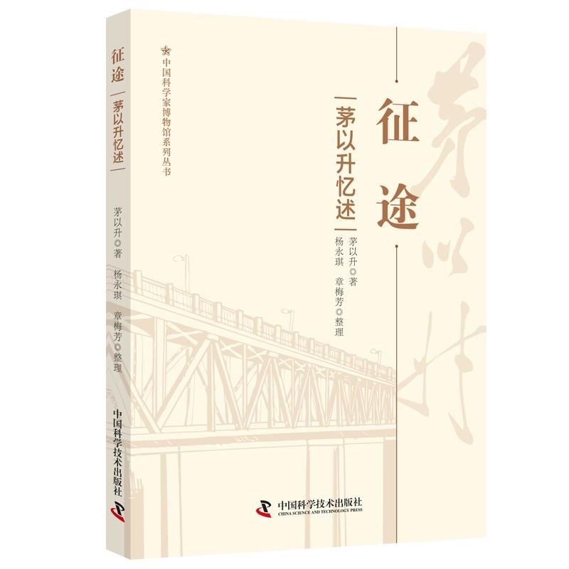 上编 征程001十八岁前的往事 003征程六十年 029铁道部科学研究院三十年 041我与中国桥梁建设 053茅以升自传 057下编 往事063我的童年 065记柳翼谋师 068留美回忆 074天文学家白莱希博士传 094唐山交通大学之回顾 099唐山学潮之我见 1021939—1942 年交大唐院的一些情况 104交大唐院1940 年院庆晚会的一些回忆 107致东南大学校长郭秉文函 109我与杏佛 112回忆我在北洋大学 114我和上海交大 120在恭绰馆命名典礼上的致辞 1231947 年上海交大校务整理委员会的回忆 125我与北方交通大学 1291949 年以前的中国工程师学会简况 130中国工程师学会简况的补充 135中国工程师学会的几项活动 1381948 年中国工程师学会台湾年会的回忆 1401949 年以前行政院工程计划团的一些情况 143我所了解的北京欧美同学会 1461949 年上海解放中的两三事 148关于上海解放前夕市政府秘书长问题 150伟大领袖毛主席接见并谈话的光荣回忆 152记毛主席为北方交通大学亲书校名 159回忆周总理 162回忆1955 年访日的郭沫若团长 169后记 171